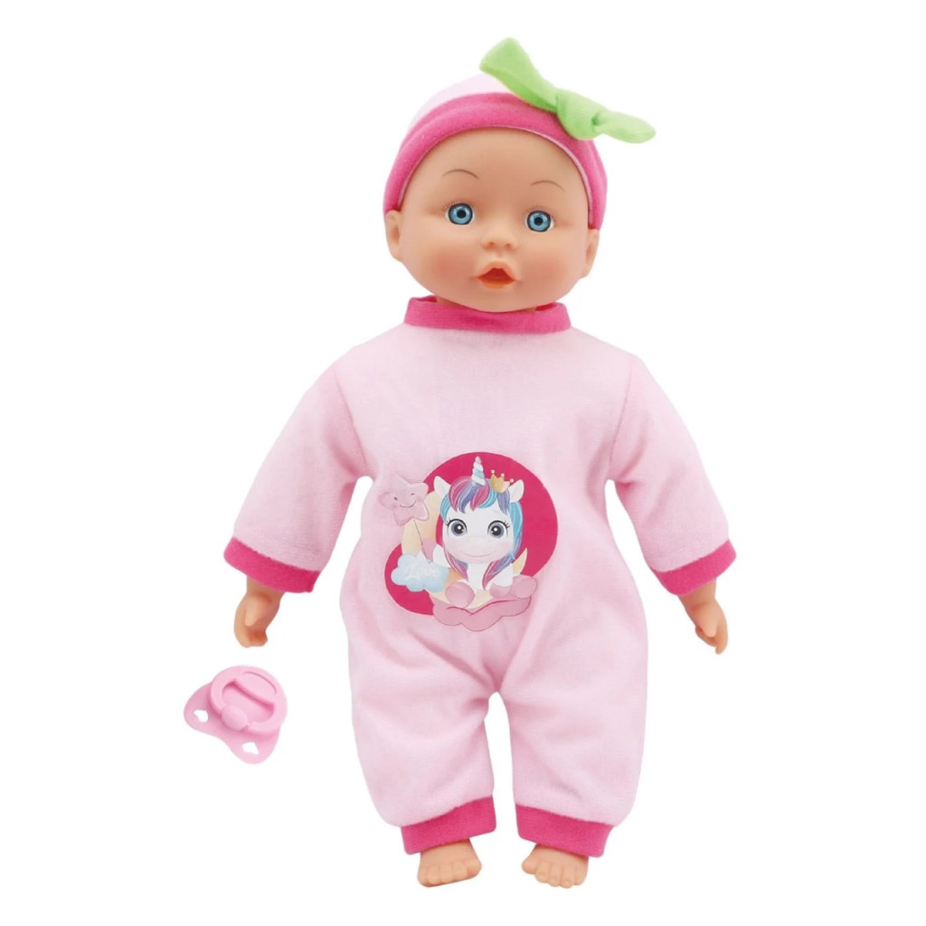 Очарователно бебе с меко тяло, розова залъгалка и 24 звука.
