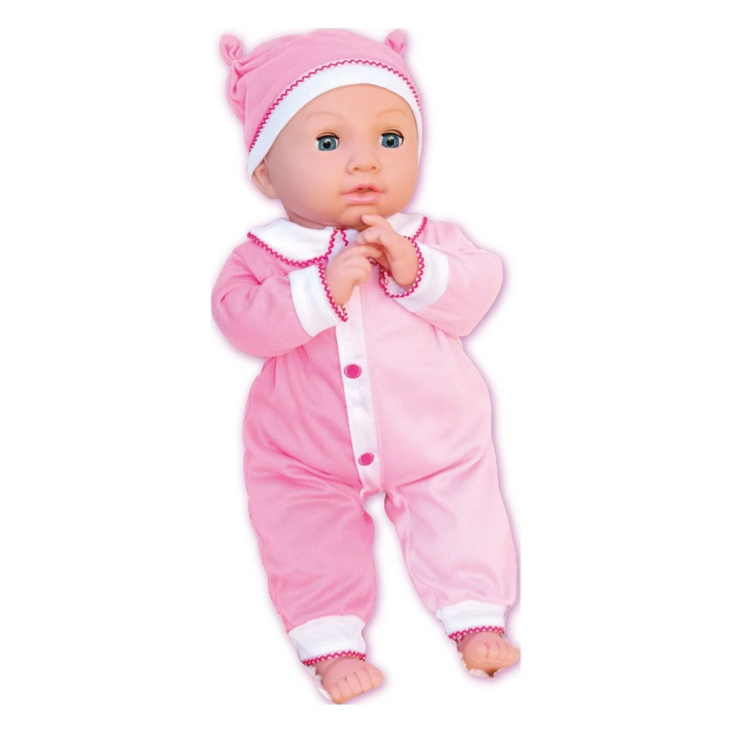 Има биберон в устата, който, щом се извади, кара куклата да заплаче.