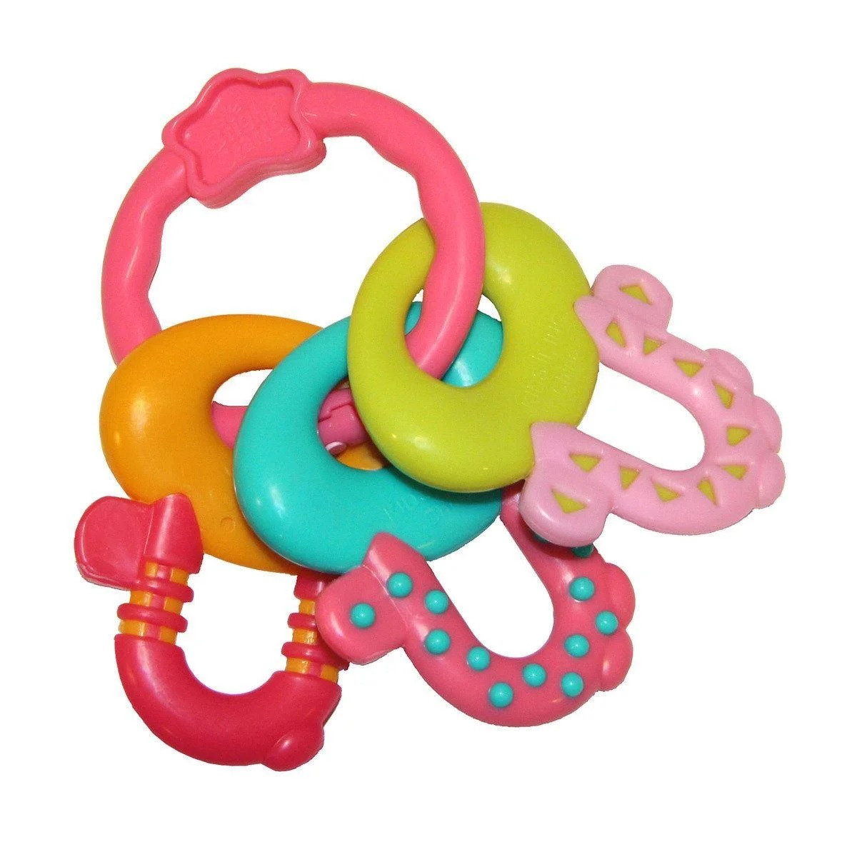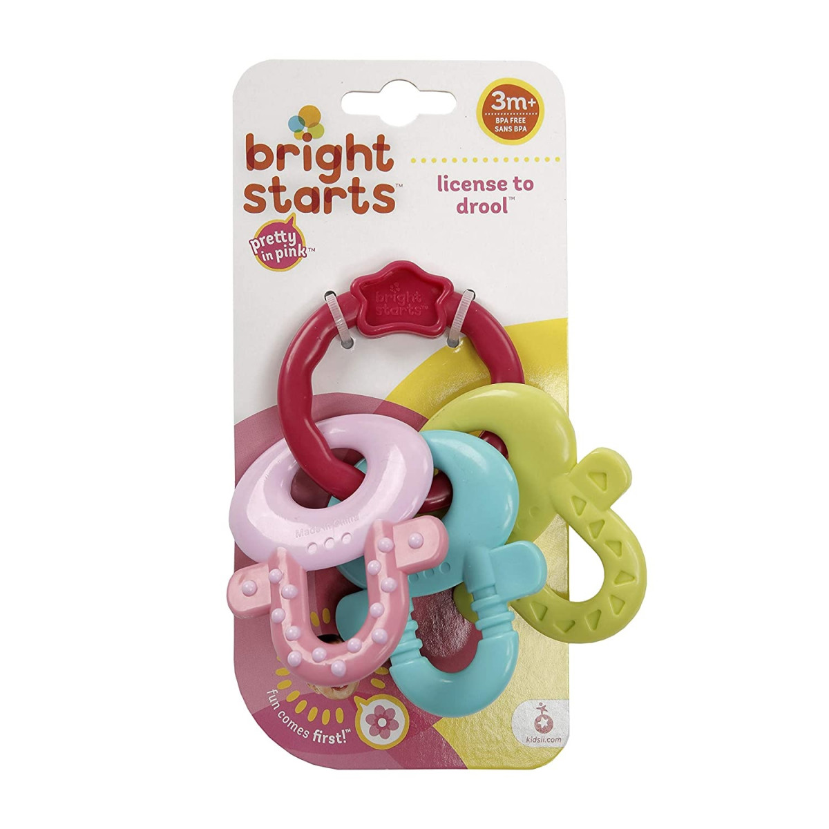 Бебешка гризалка Bright Starts, Силиконови ключета, За чесане на зъбки, 3+ месеца, Розов