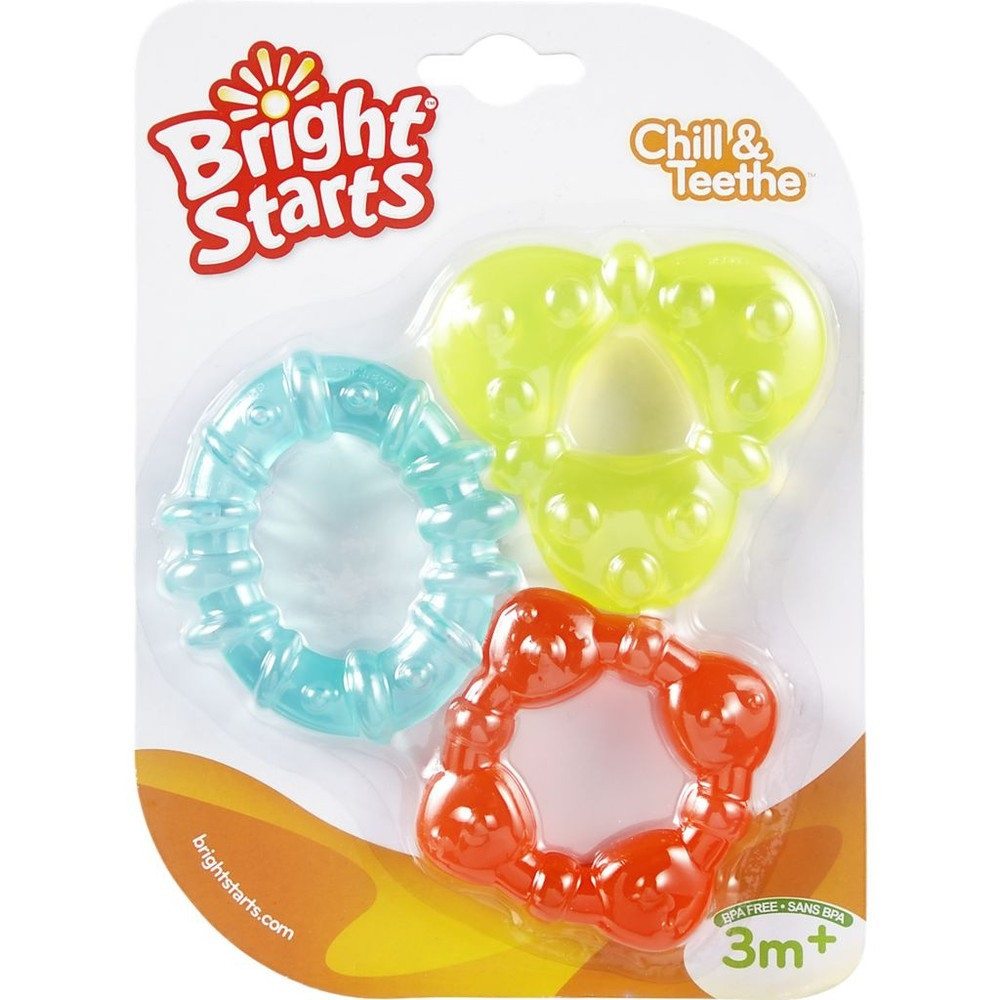 Бебешки гризалки Bright Starts, 3 силиконови различни форми, За чесане на зъбки, 3+ месеца, Многоцветни