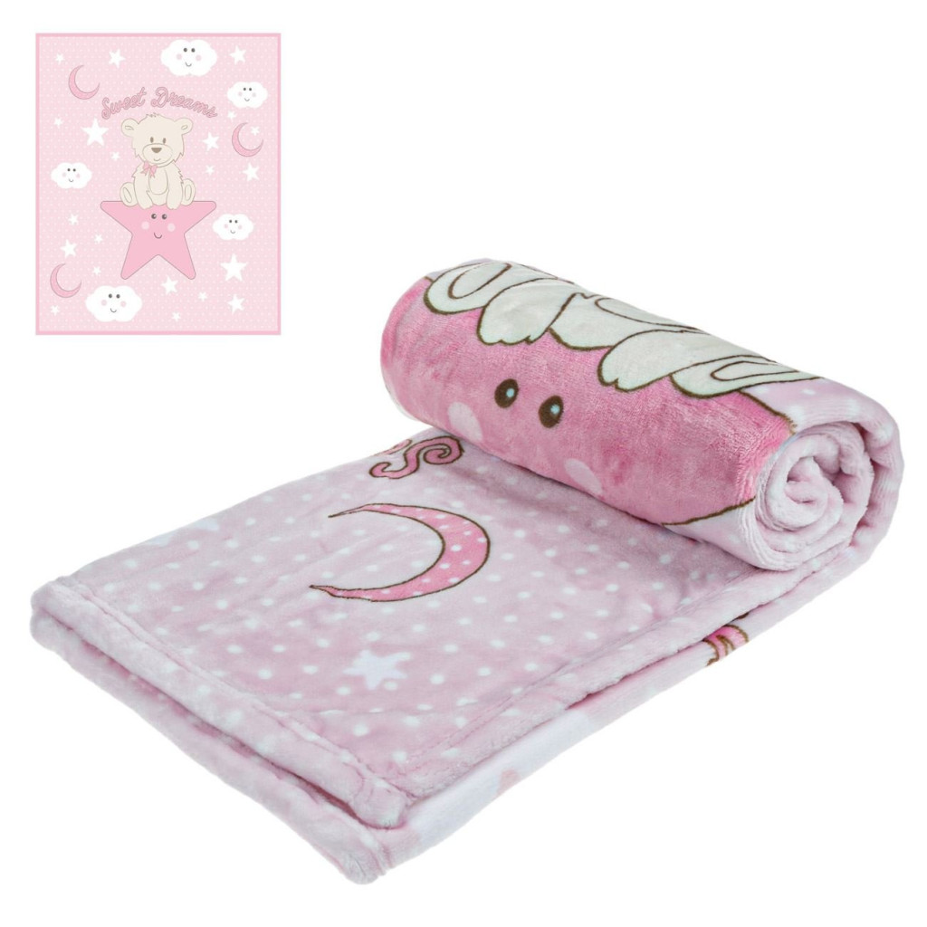 Бебешко поларено одеяло Мече, 90x80 cm, Розово