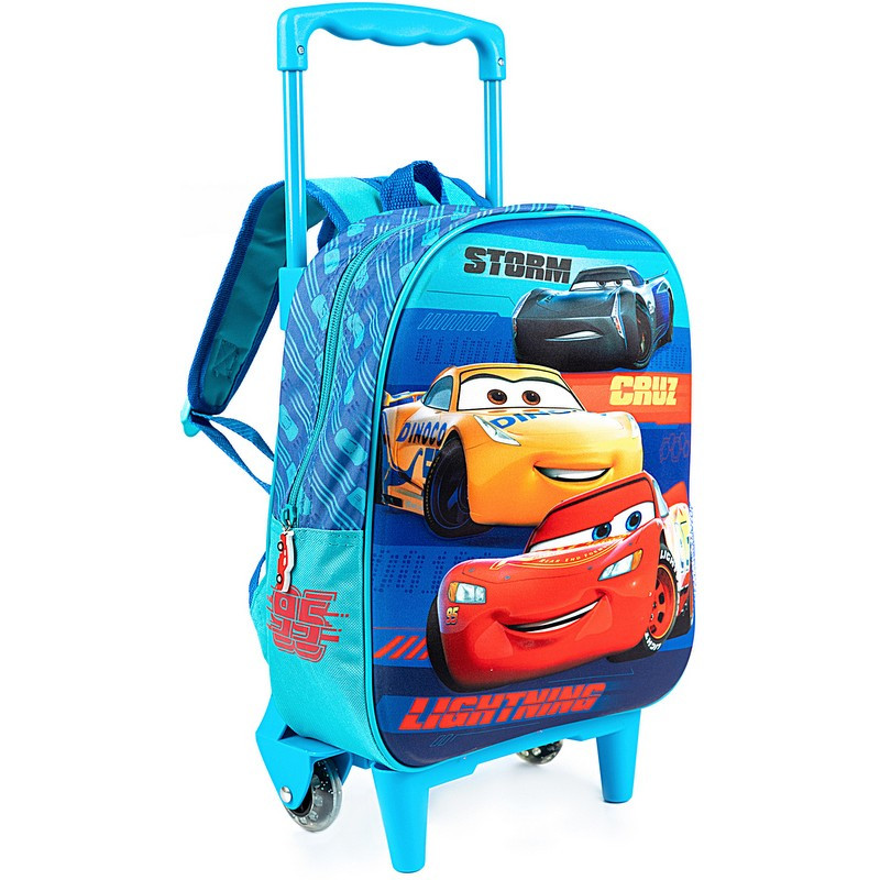 Раницата за детска градина тип куфар е идеалния избор за феновете на любимите герои от Cars.Разполага с просторно основно отделение, подходящо за съхранение на тетрадки, книги и други необходими за ежедневието вещи.Освен това е оборудван с мрежест страничен джоб, за да държи напитките и малките закуски под ръка.Благодарение на системата тип куфар, детето може лесно да взима раницата със себе си навсякъде, без да натоварва гърба си.Регулируемите презрамки позволяват адаптирането на раницата според височината на детето, предлагайки повишен комфорт по време на пътуване.Характеристики:- 1x отделение;- система за затваряне с цип;- 1x мрежест страничен джоб;- силиконови колела;- телескопична дръжка;- регулируеми презрамки.