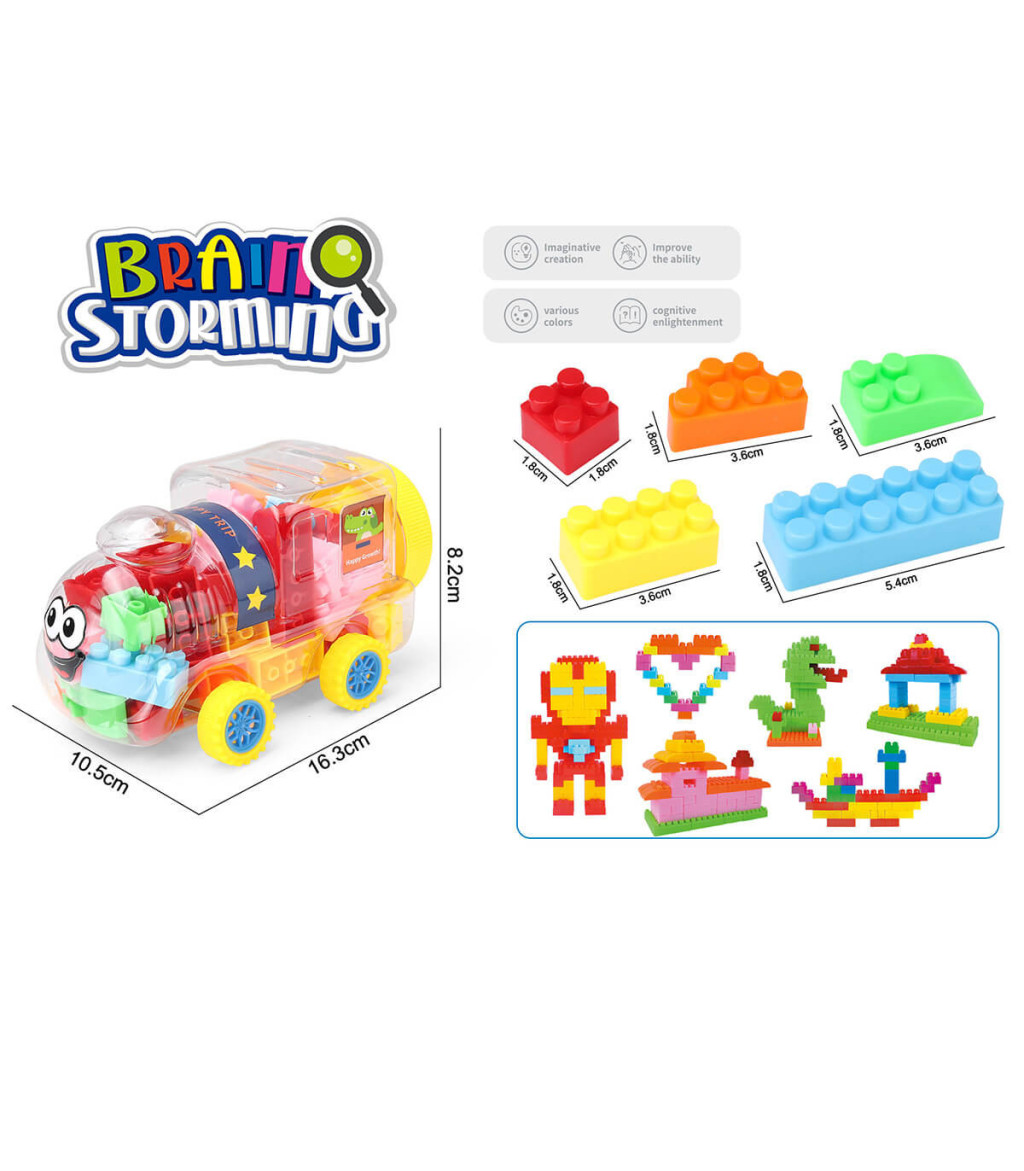 Весел конструктор на колелца, подходящ за момичета и момчета. Съдържа 50 строителни елемента и книжка с идеи. Страхотно средство за забавление, което неусетно развива творческото мислене на децата, както и умението им да се фокусират и съсредоточават! · Брой части: 50 · Размери в см: 16,5 х 10,5 х 8 · Материал: нетоксична пластмаса · Подходящо за деца над 3 год. · Произведено в Китай