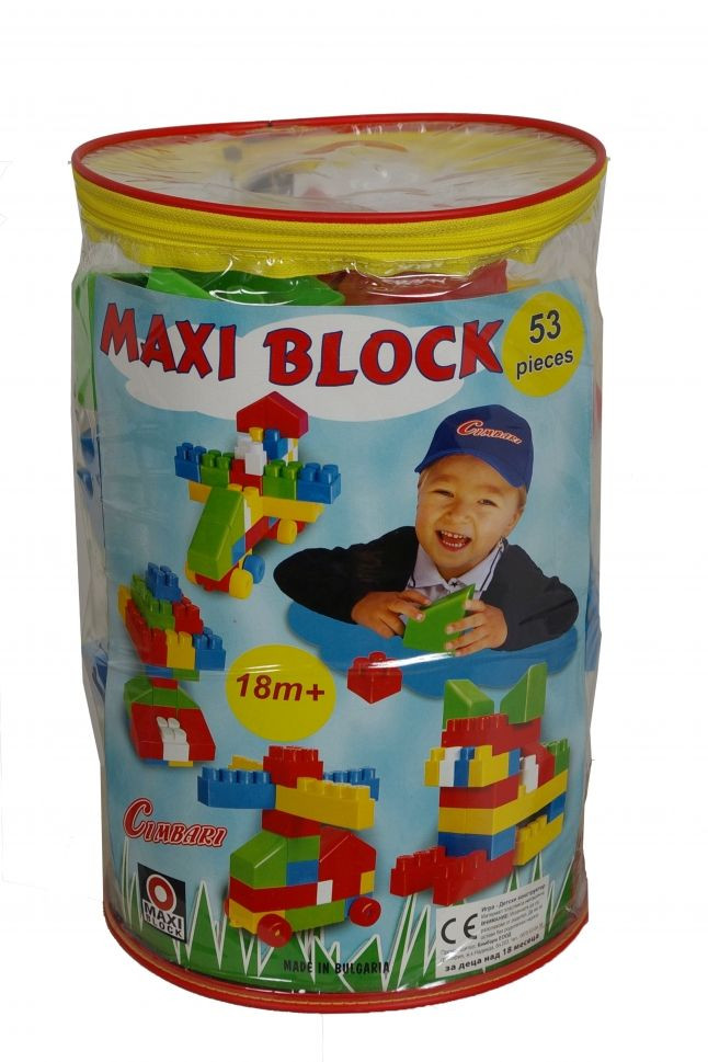 Конструктор CIMBARI е новата любима игра на малчуганите. Ако строенето на кули от кубчета вече е омръзнало на детето ви, време е да премине към нещо по-сложно. Блокчетата са направени от нетоксична здрава пластмаса, което ги прави безвредни за децата, а достатъчно големите им размери са подходящи дори за начинаещите строители. · Брой части: 53 · Размери на опаковката в см: 36 х 24 х 24 · Материал: нетоксична пластмаса · Подходящо за деца над 1 год. · Произведено в България