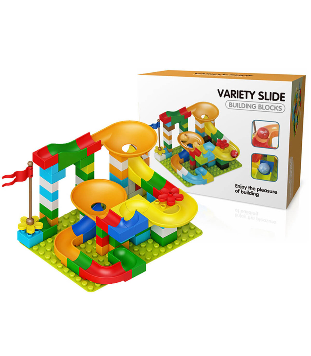Интересен конструктор за тези, които обичат да сглобяват тухли и да развиват въображението си! Изградете конструкцията върху строителната площадка, като се стараете да подредите елементите така, че топчетата да могат да минават безпрепятствено по пързалката. Комплектът съдържа листовка с примерни конструкции - използвайте я или импровизирайте и създайте свои собствени проекти! · Брой части: 89 · Размери на опаковката в см: 26 х 10 х 20 · Материал: нетоксична пластмаса · Подходящо за деца над 3 год. · Произведено в Китай