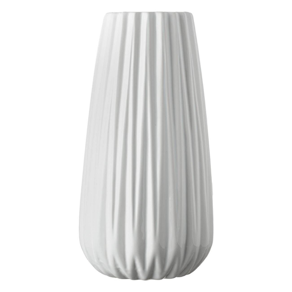 Декоративна керамична ваза с релефни вертикални ивици, Бяла, 13x25 cm
