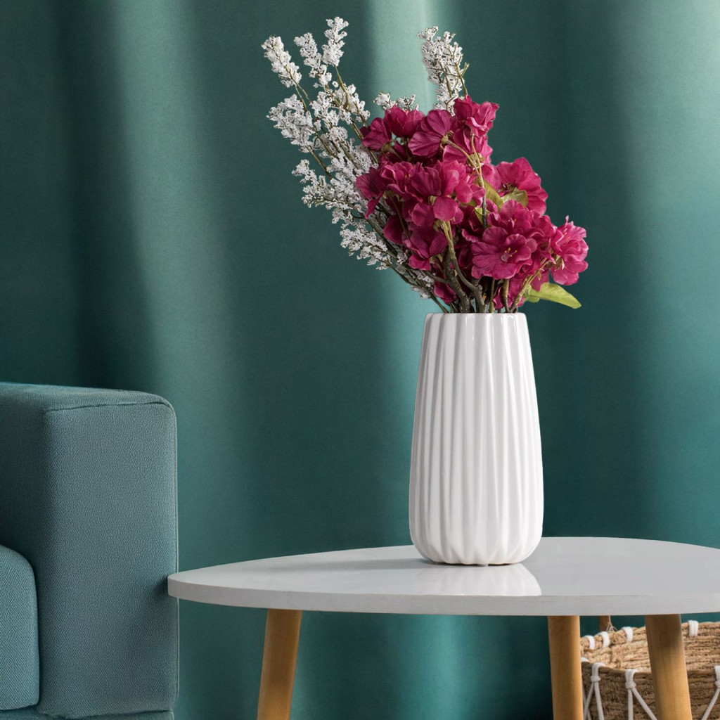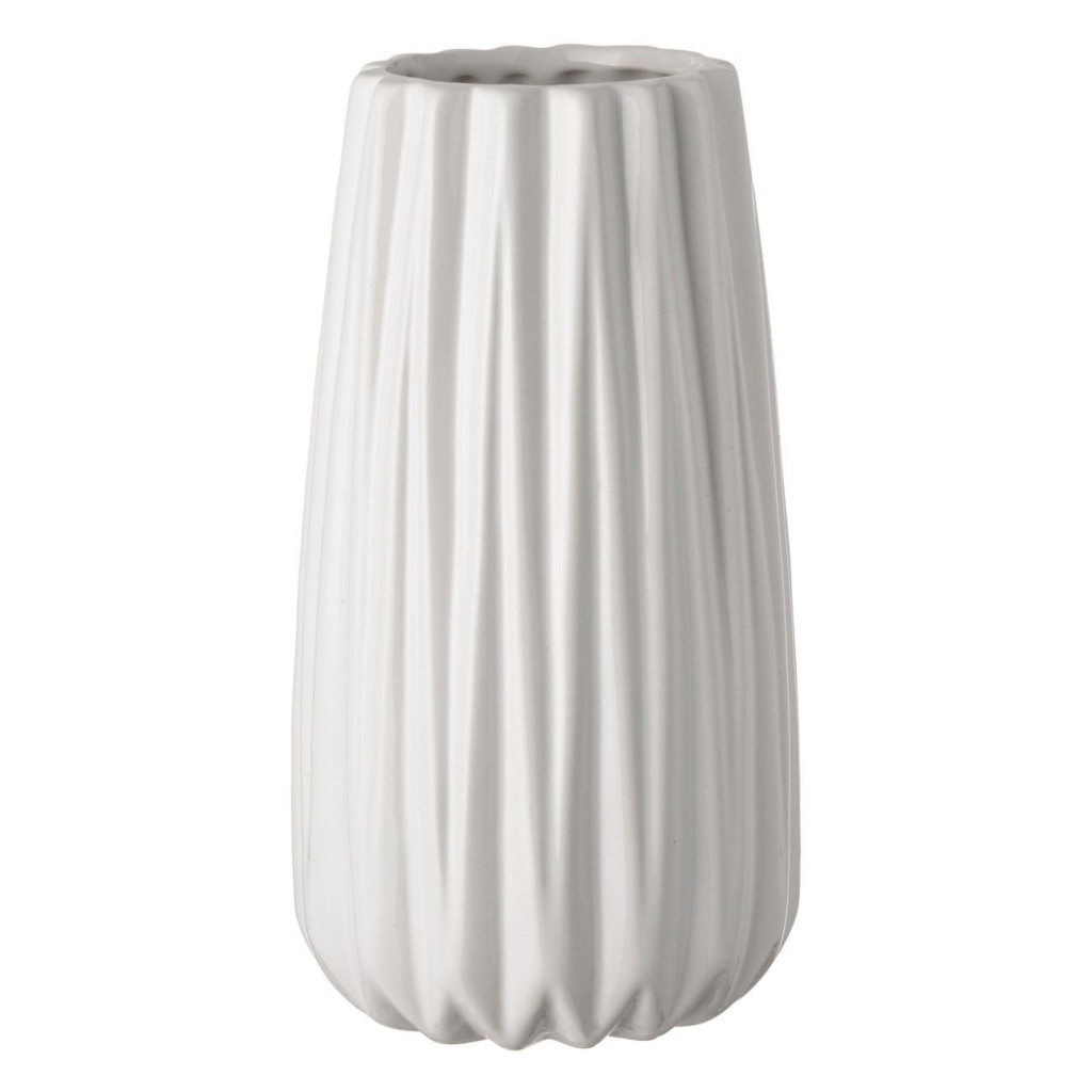 Декоративна ваза Керамична бяла с релефни вертикални ивици, 12x19 cm