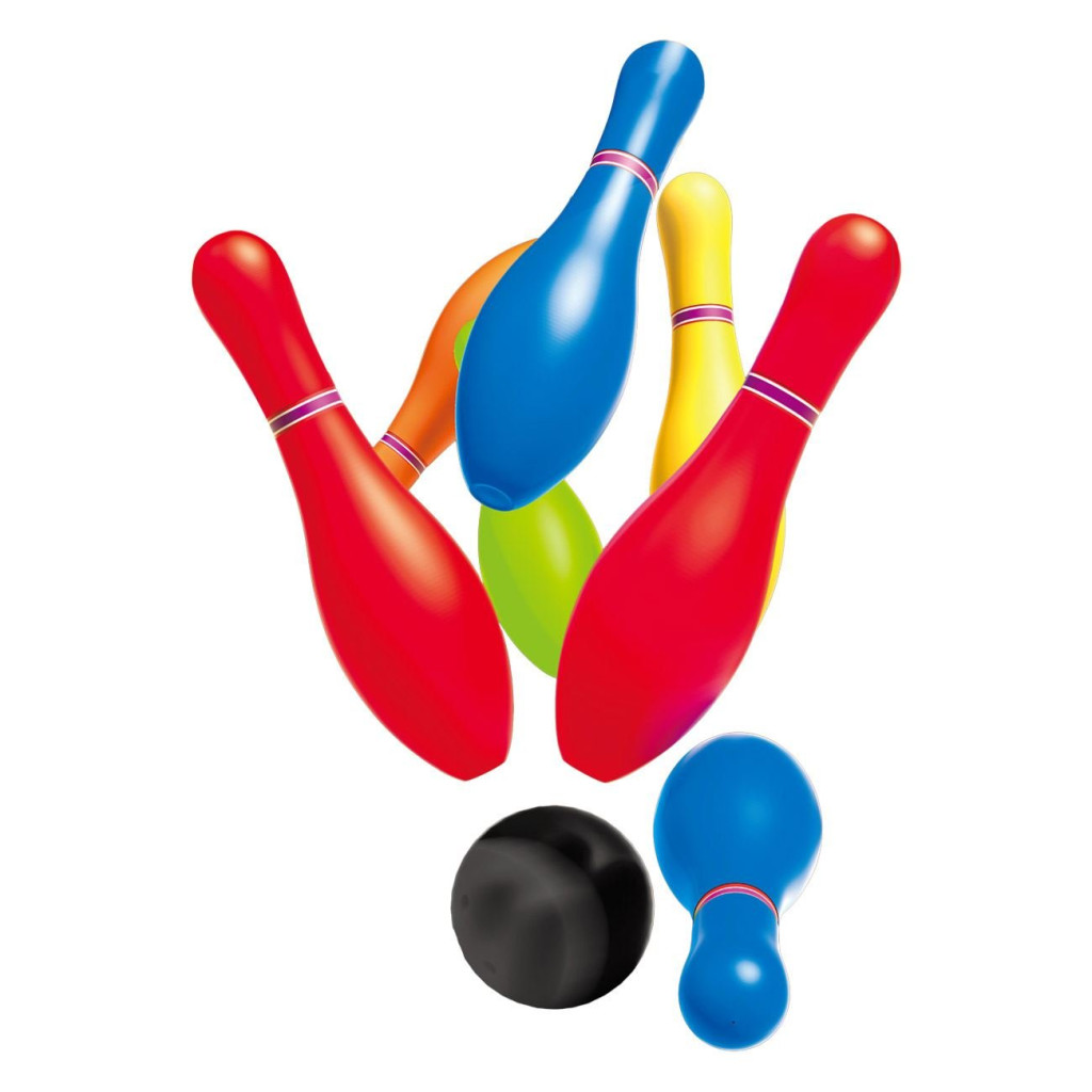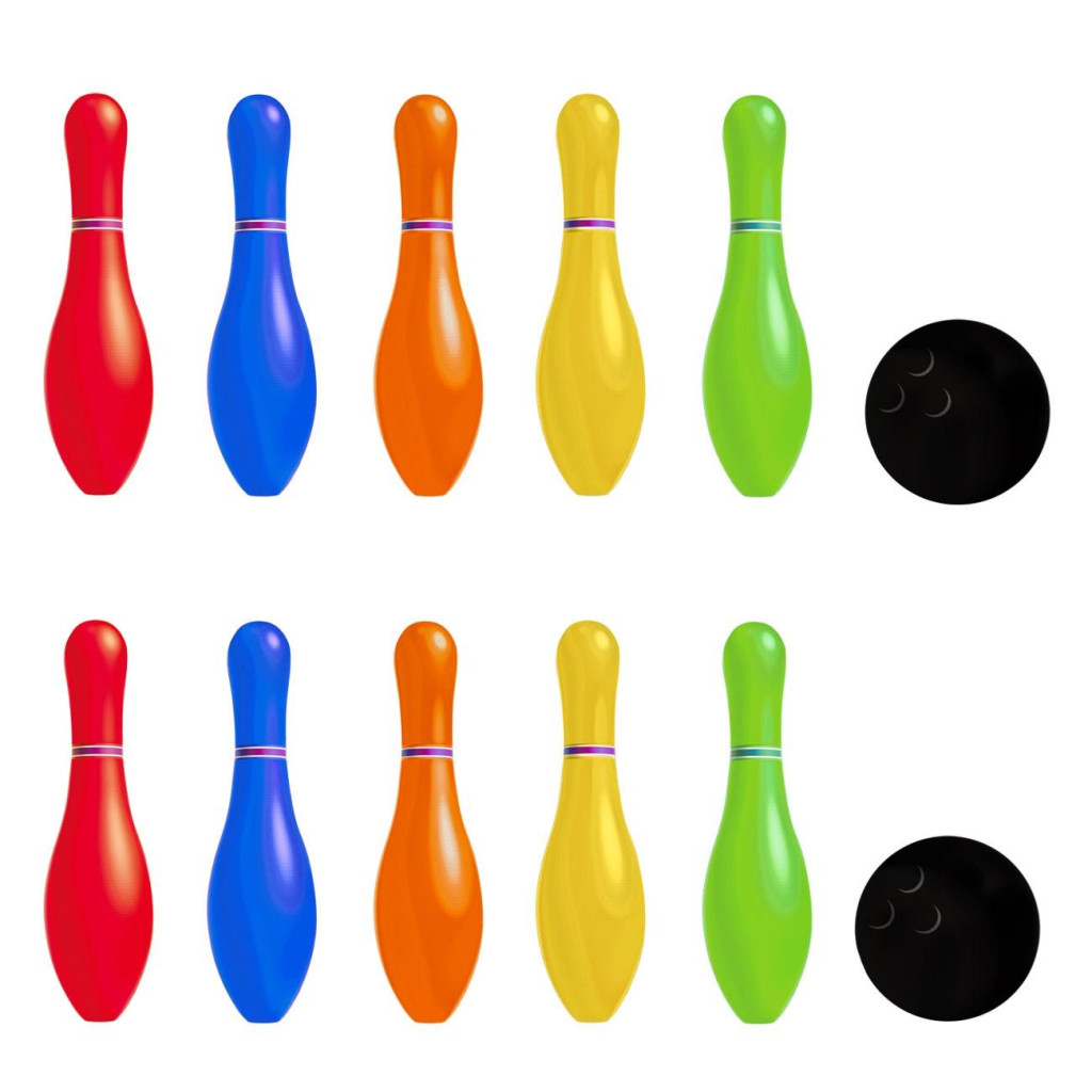 Комплект боулинг с 10 цветни кегли с височина 29 см и 2 черни топки с диаметър 12.5 см