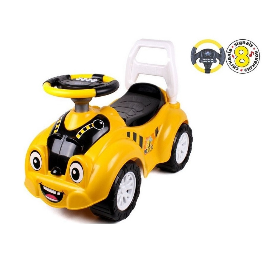Детска кола за баланс и прохождане, С музикален волан с 8 активности, 63 х 42 х 29 см, 1.5 + години, Жълт