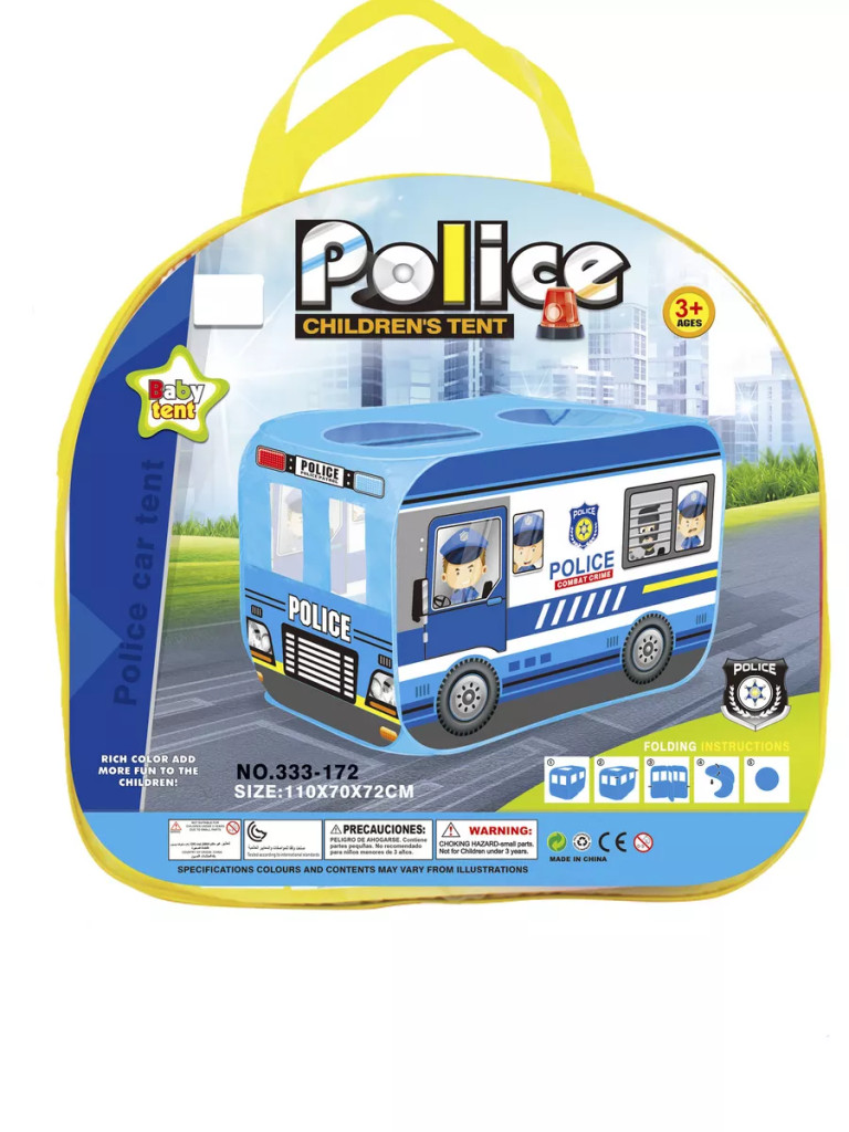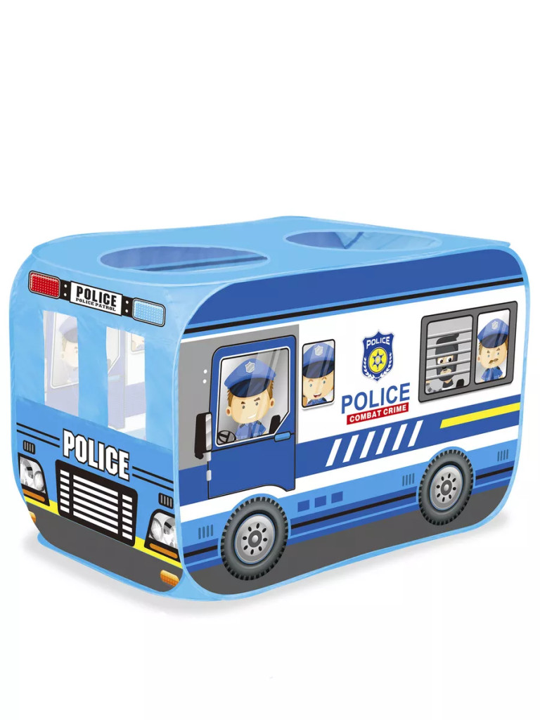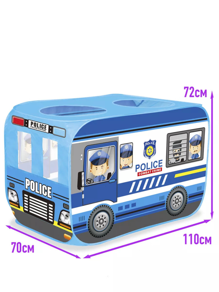 Тази детска текстилна палатка под формата на полицейска кола, със сигурност ще зарадва всяко момченце. Тя е лесна за разгъване, събиране и съхранение, а компактните й размери я правят идеална за игри както навън, така и у дома, в детски градини и кътове или други закрити пространства. Напълнете я с цветни топки и ще имате страхотен сух басейн! При всички случаи, забавлението с палатката ще донесе много усмивки на вашето съкровище, а тя самата ще се превърне в най-любимото му кътче за игра!