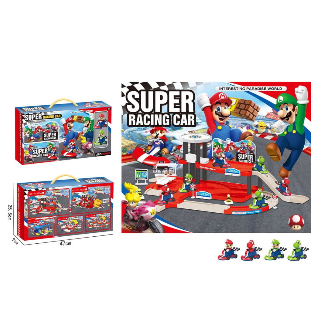 Детски паркинг за игра на 2 етажа, с бензиностанция, писта-пързалка,указателни знации хеликоптерна площадка.