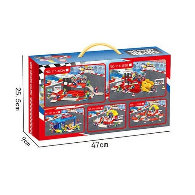 Детски комплект Паркинг - Писта с хеликоптерна площадка и Бензиностанция, 2 нива, 2 колички с герои, 47 х 9 х 26 см, 3+ години