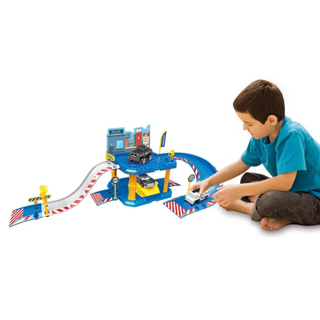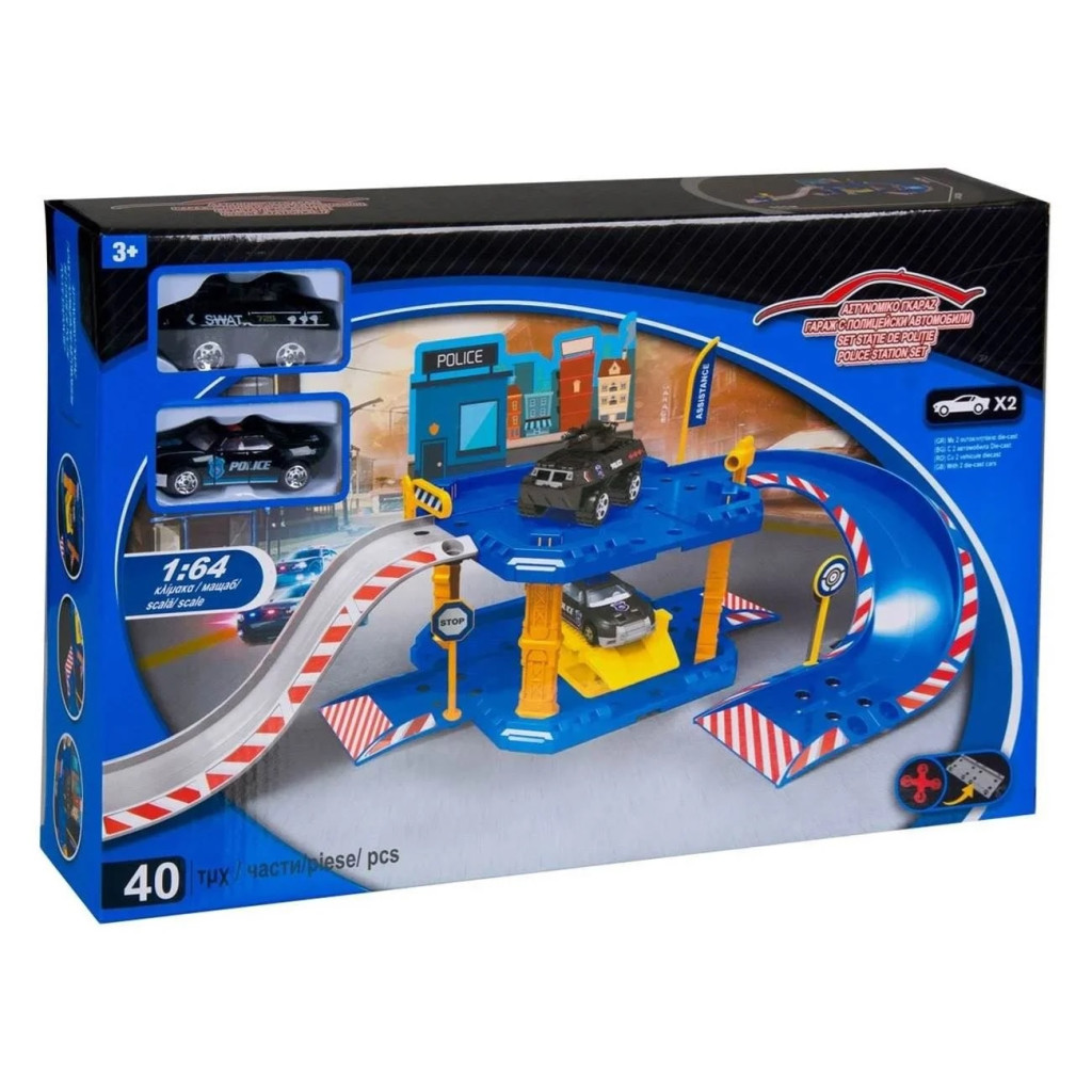Детски паркинг - гараж на 2 нива и с 2 колички, 40 части, Полицейска станция, 55x24x19 cm, 3+ години