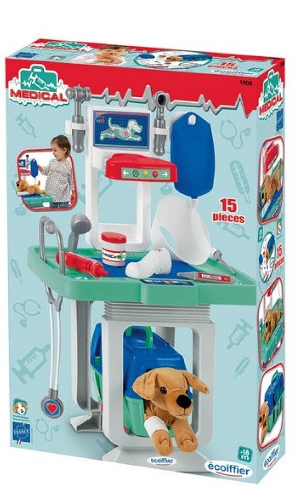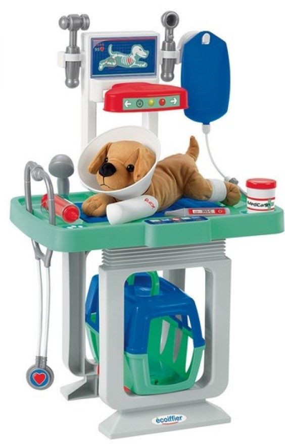 Ветеринарен център с всичко необходимо за посещение на животни и лечение на всичките им заболявания. Този ветеринарен център е оборудван с маса за ветеринарен преглед, рентгенов скенер, клетка за транспортиране на домашни любимци и аксесоари, включително меко плюшено кученце. Точно като истински ветеринар: момичетата и момчетата могат да се забавляват като имитират възрастните, диагностицират и лекуват своите плюшени животни или дори куклите си. Имитирайки възрастни и забавлявайки се с различни играчки, децата се учат да се ориентират в заобикалящия ги свят, да развиват своите умения и страсти и да стават по-независими всеки ден.