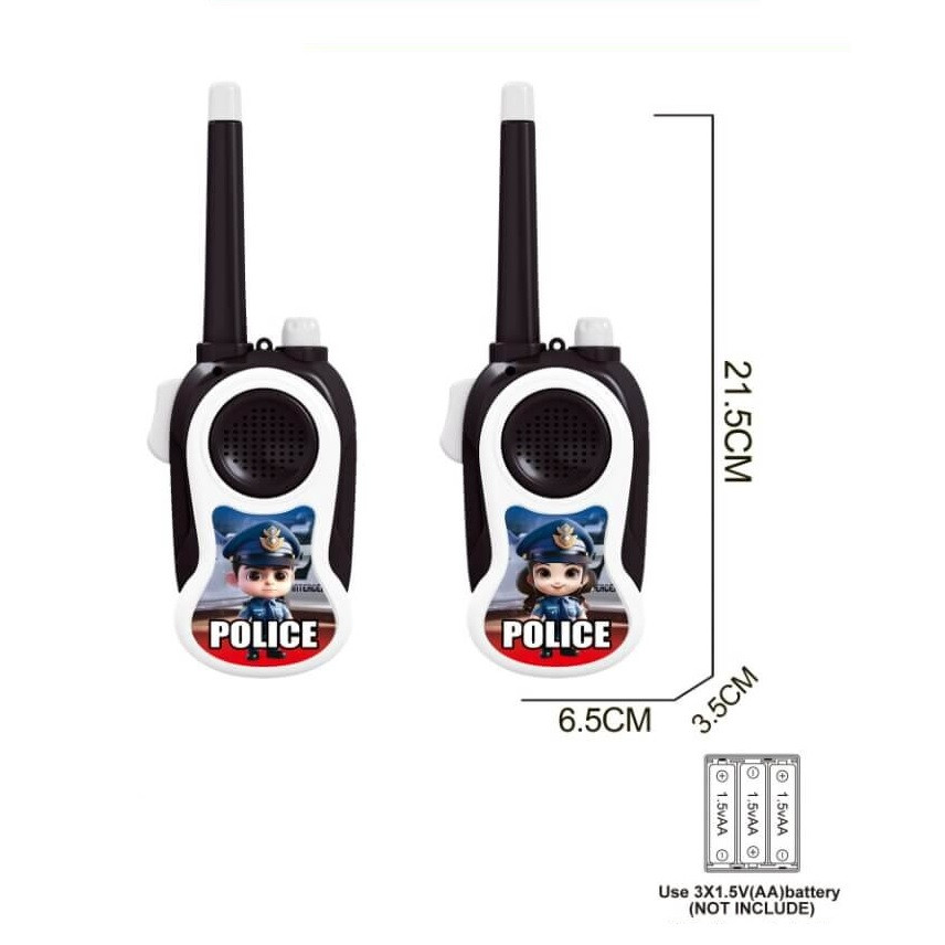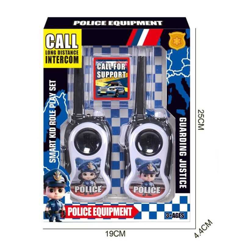 Специално за най-запалените любители на полицейските филми и техните приключения! Използвайте у дома или навън, за да бъдете в постоянна връзка с приятелите си, дори и от разстояние! Комплектът съдържа 2 уоки токи с гумени антени и щипки за закачане на джоб или гайка. За най-добро предаване и приемане на сигнала – дръжте антената във вертикално положение!
