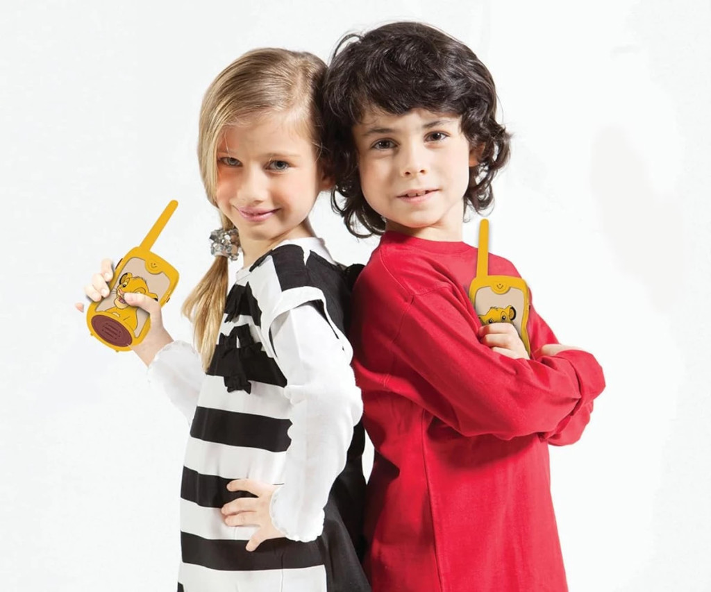 Цветният дизайн The Lion King добавя нотка стил, правейки всяко приключение още по-вълнуващо. Младите фенове на филмите на Дисни ще харесат страхотния, динамичен вид на тези уоки-токита за деца. Носете вашите уоки-токита, където и да отидете с вградената щипка за колан. Независимо дали става въпрос за тайна мисия в градината или експедиция в гората, уоки-токитата The Lion King са винаги под ръка. Нещо повече, те са лесни за използване благодарение на интуитивните им бутони. Подарете на децата си уоки-токита Цар Лъв. Перфектни за стимулиране на въображението и насърчаване на игри на открито, тези уоки-токита за деца са идеален подарък за млади изследователи.
