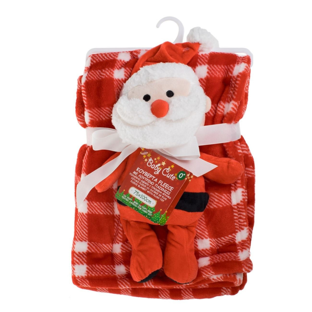 Детско одеяло Коледа 75 х 100 см. с плюшена играчка Дядо Коледа, Christmass blanket & toy