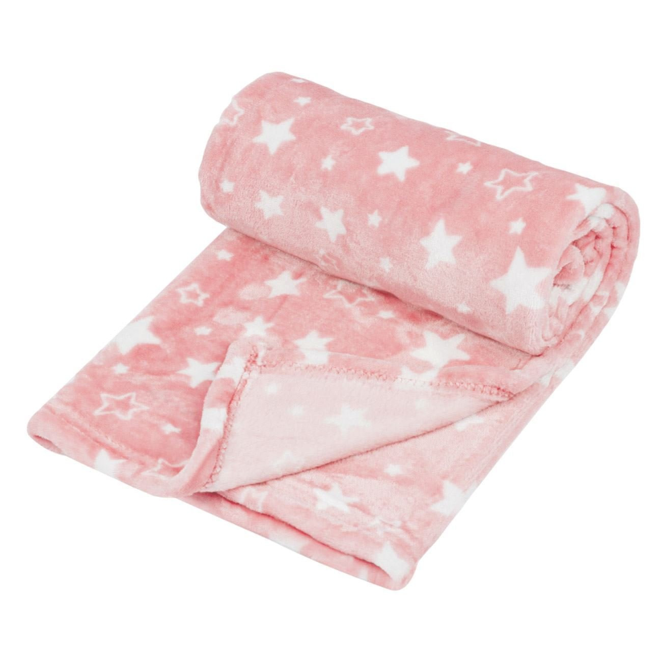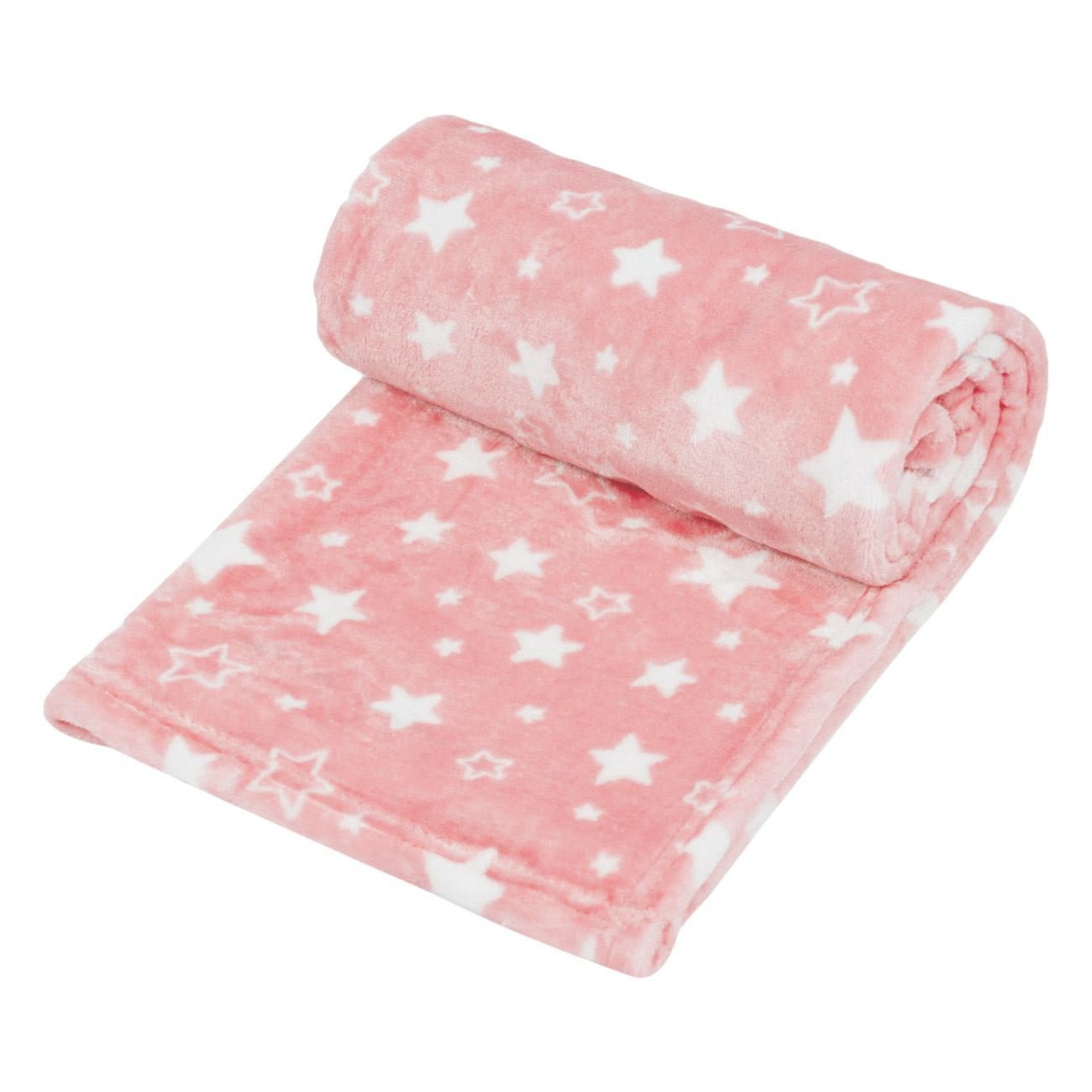 Детско поларено одеяло Pink White Stars, 140x100cm, меко на допир