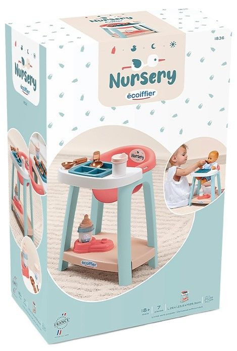 Детско столче за хранене на къкла-бебе, 7 части, 15 x 38.5 x 25 cm, Ecoiffier Baby High Chair