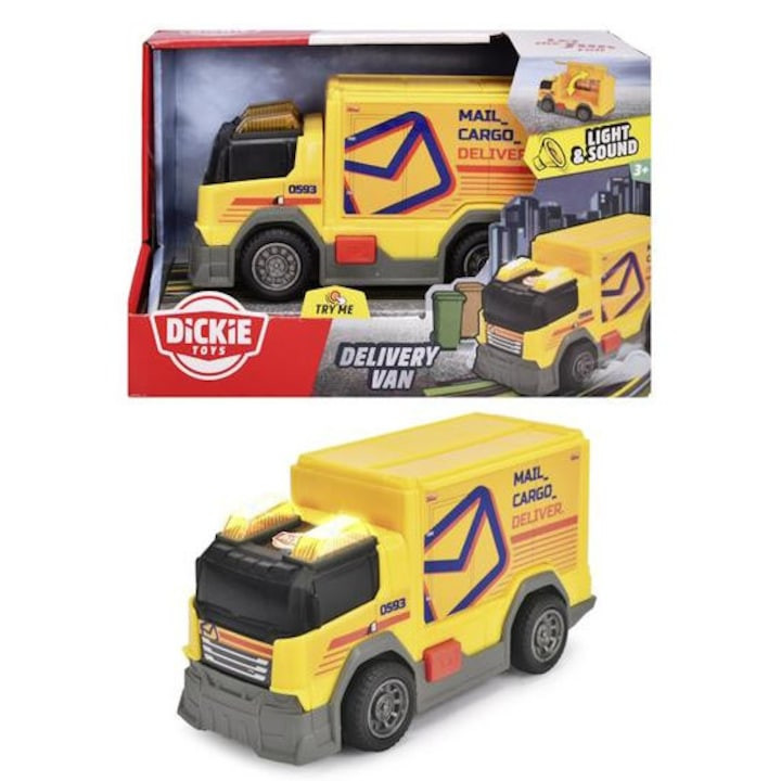 Dickie Детска играчка: Микробус за доставки, със звуци и светлини 15см., Van Car, 203302038