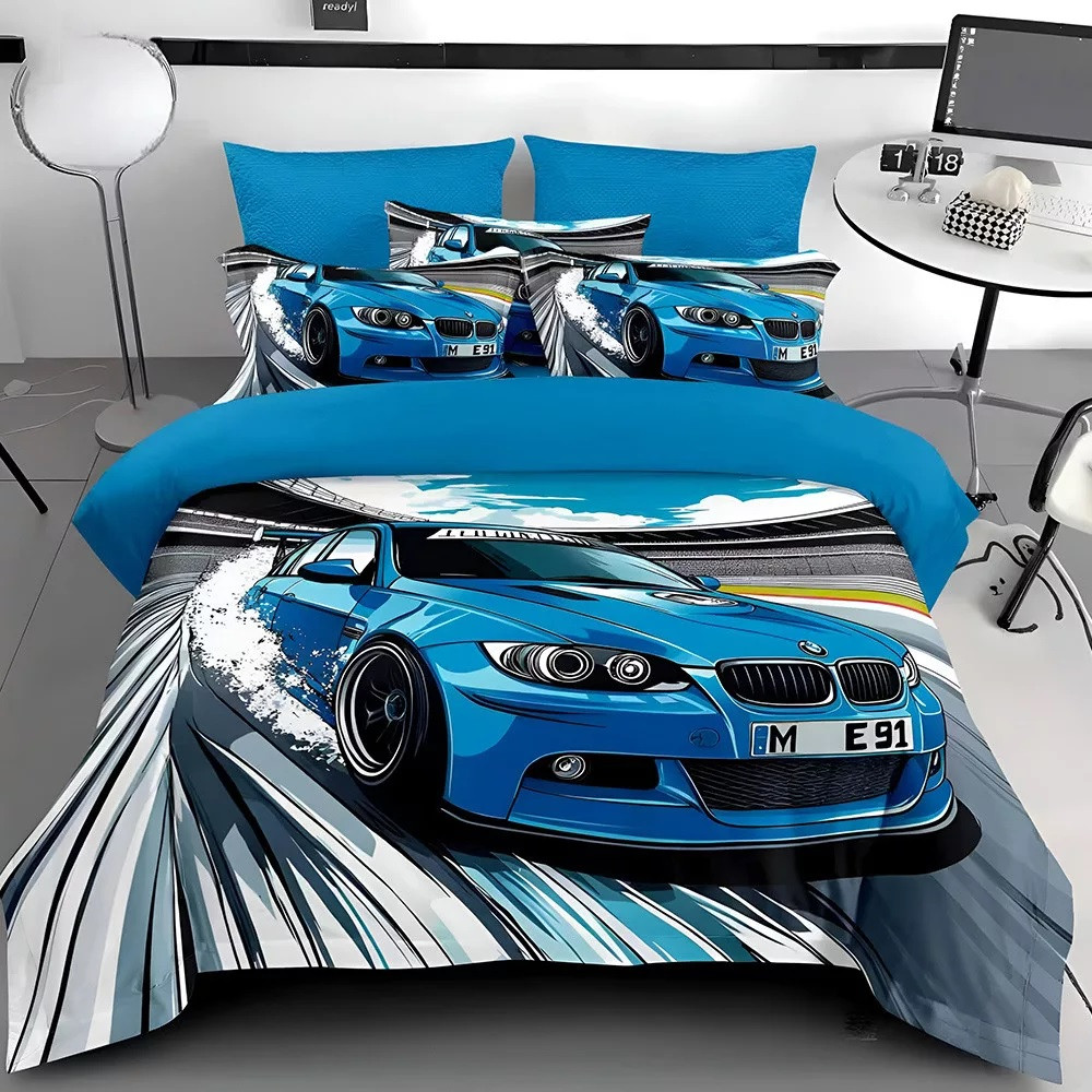 НОВО Двулицево детско спално бельо 3D, BMW, 200 x 230 cm, 6 части, 19106, Син/Бял