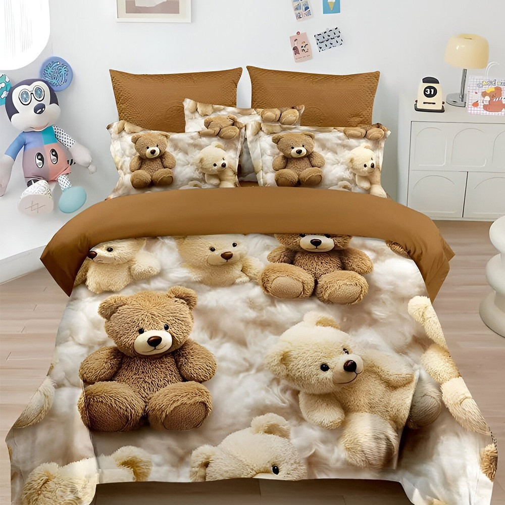 Двулицево детско спално бельо 5D, Bear-My friendS 200 x 230 cm, 6 части, 18726, Беж/Светлобежав