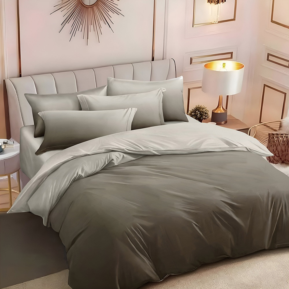 Двулицево спално бельо с ластик, 6 части, 17697. 200 x 230 см, Сив пепел