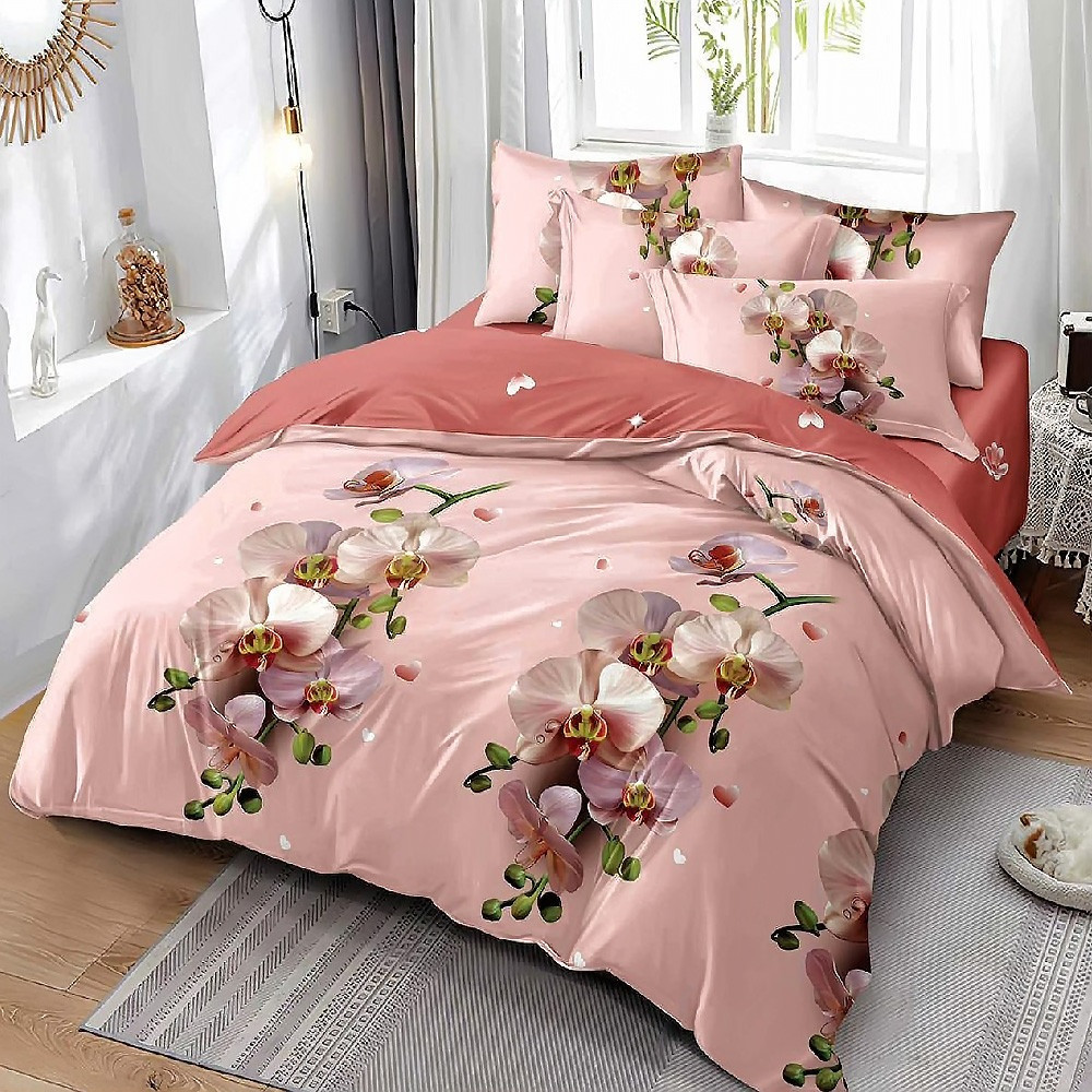 НОВО Двулицево спално бельо с ластик Орхидея, 6 части, 18362. 200 x 230 см, Светло Роз
