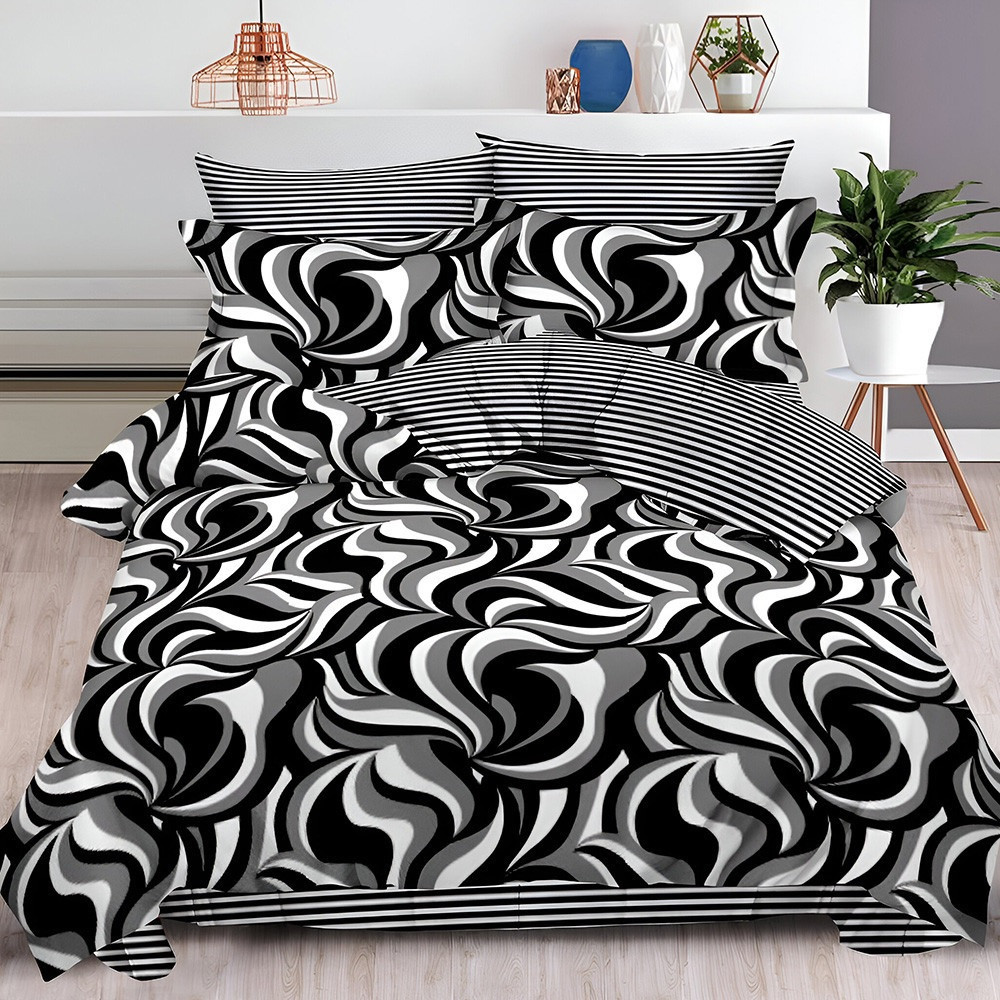 Двулицево спално бельо с ластик, 6 части, 18528. 200 x 230 см, Черно/Бяло