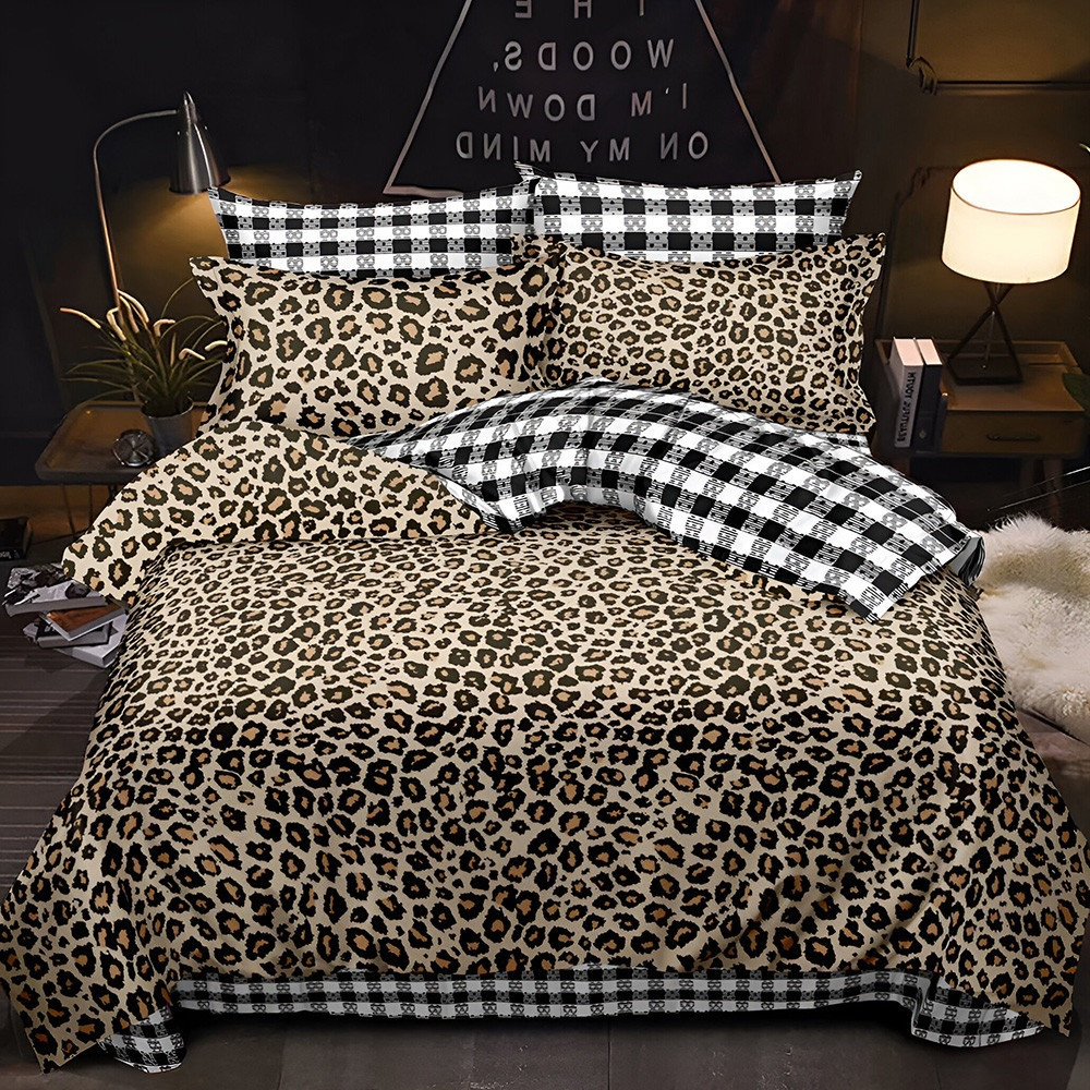 Двулицево спално бельо с ластик, 6 части, 18533. 200 x 230 см, Леопардово