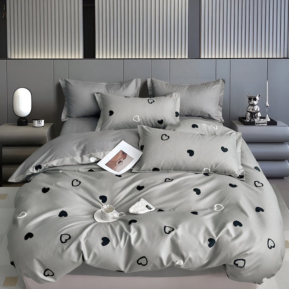 НОВО Двулицево спално бельо с ластик Сърчица, 6 части, 17915. 200 x 230 см, Сив/Черен