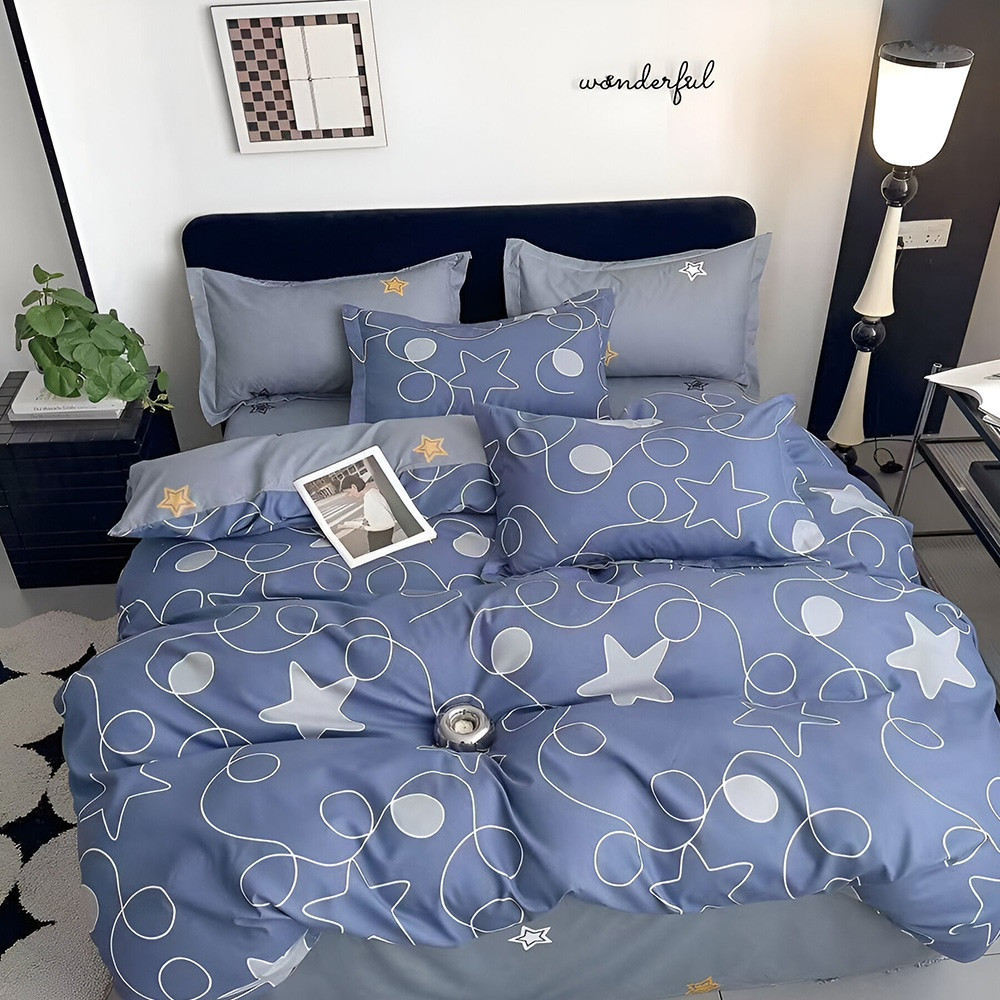 Двулицево спално бельо с ластик, 6 части, 200 x 230 см, различни цветове