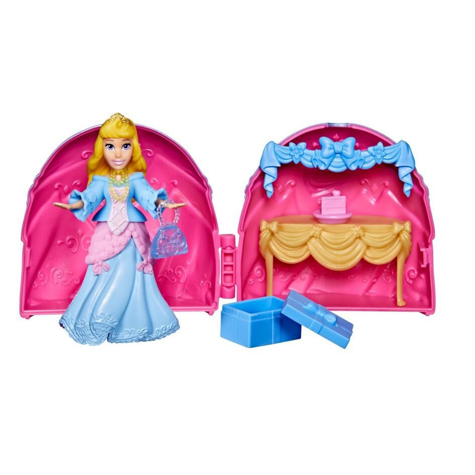 Тази 3,3-инчова кукла Disney Princess се предлага в голяма пола, която се отваря, за да разкрие стая вътре, пълна с маса и банер за парти.