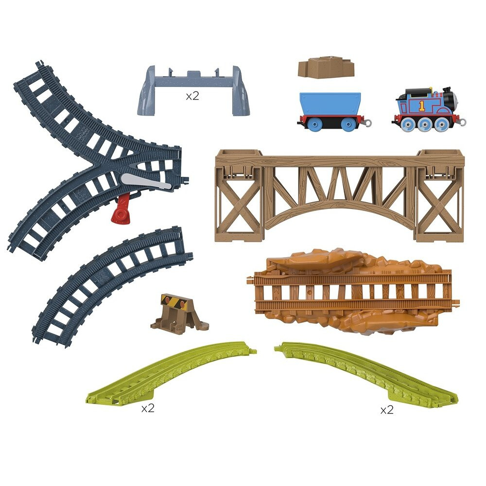 Комплектът идва с аксесоари като:- мост и депо за товаро-разтоварни дейности за вълнуваща железопътна игра- 1 локомотив Томас с вагон и товар- Комплект релси - 14 елемента-Дължина на пистата 183 см.Играта с въображение помага за насърчаване на развитието на двигателните умения на децата Свържете комплекта с други пакети с писти на Thomas & Friends за още по-големи приключения