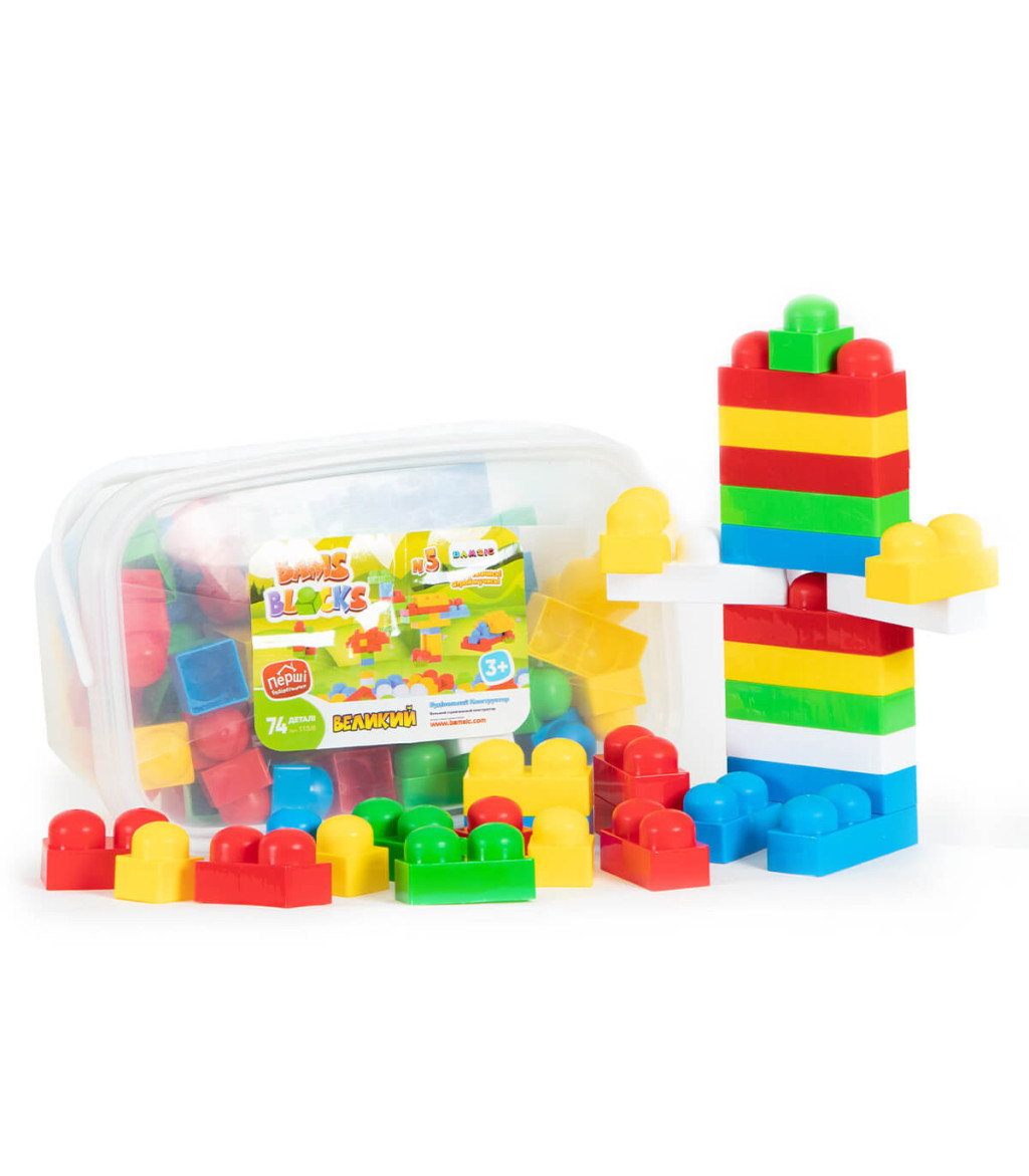 Цветен конструктор, създаден специално за малките почитатели на този тип забавления. Съдържа 74 ярки части, които лесно се свързват една с друга в различни комбинации, а сравнително големият им размер ги прави подходящи дори за начинаещи строители. Страхотно средство за развлечение, което неусетно развива творческото мислене на децата, както и умението им да се фокусират и съсредоточават! Опаковка: прозрачна пластмасова кутия с дръжка. · Размери на опаковката в см: 29 х 18 х 15 · Материал: нетоксична пластмаса · Подходящо за деца над 3 год. · Произведено в Украйна