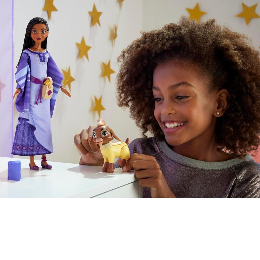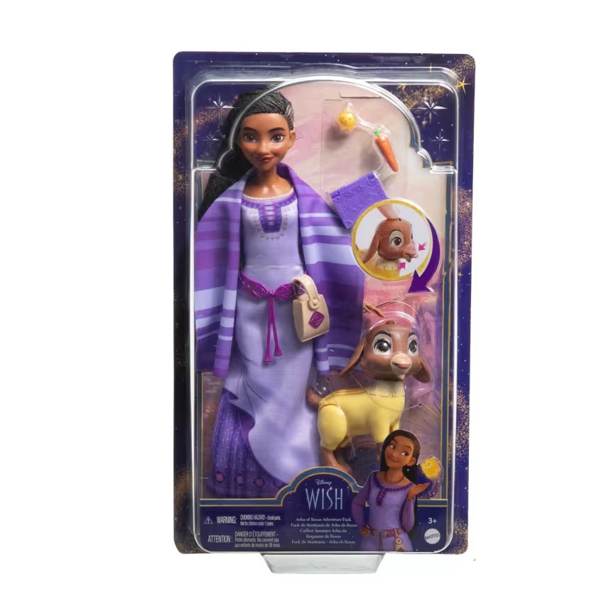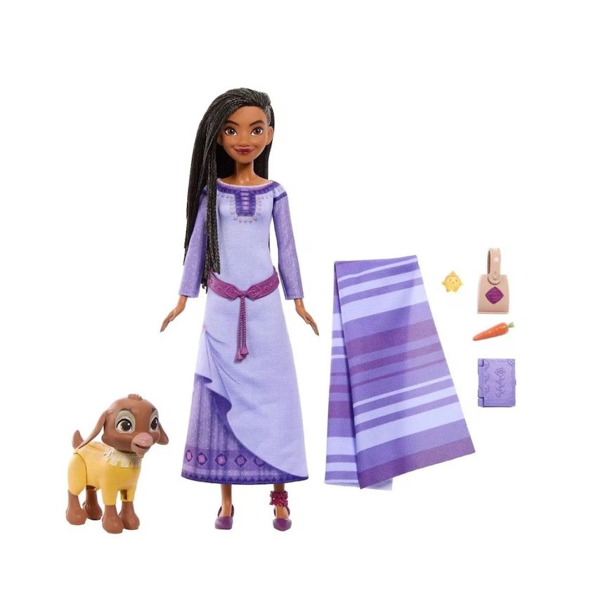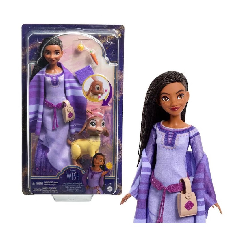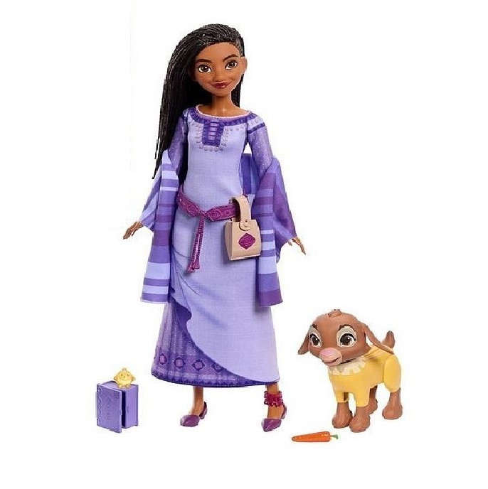 Страхотната Аша, дело на Disney е мечтаният подарък за всяко момиченце. Изящна и нежна, тя е облечена в характерната за нея лилава рокля. Пристига заедно с аксесоари като шал, чанта, морковче, книжка.