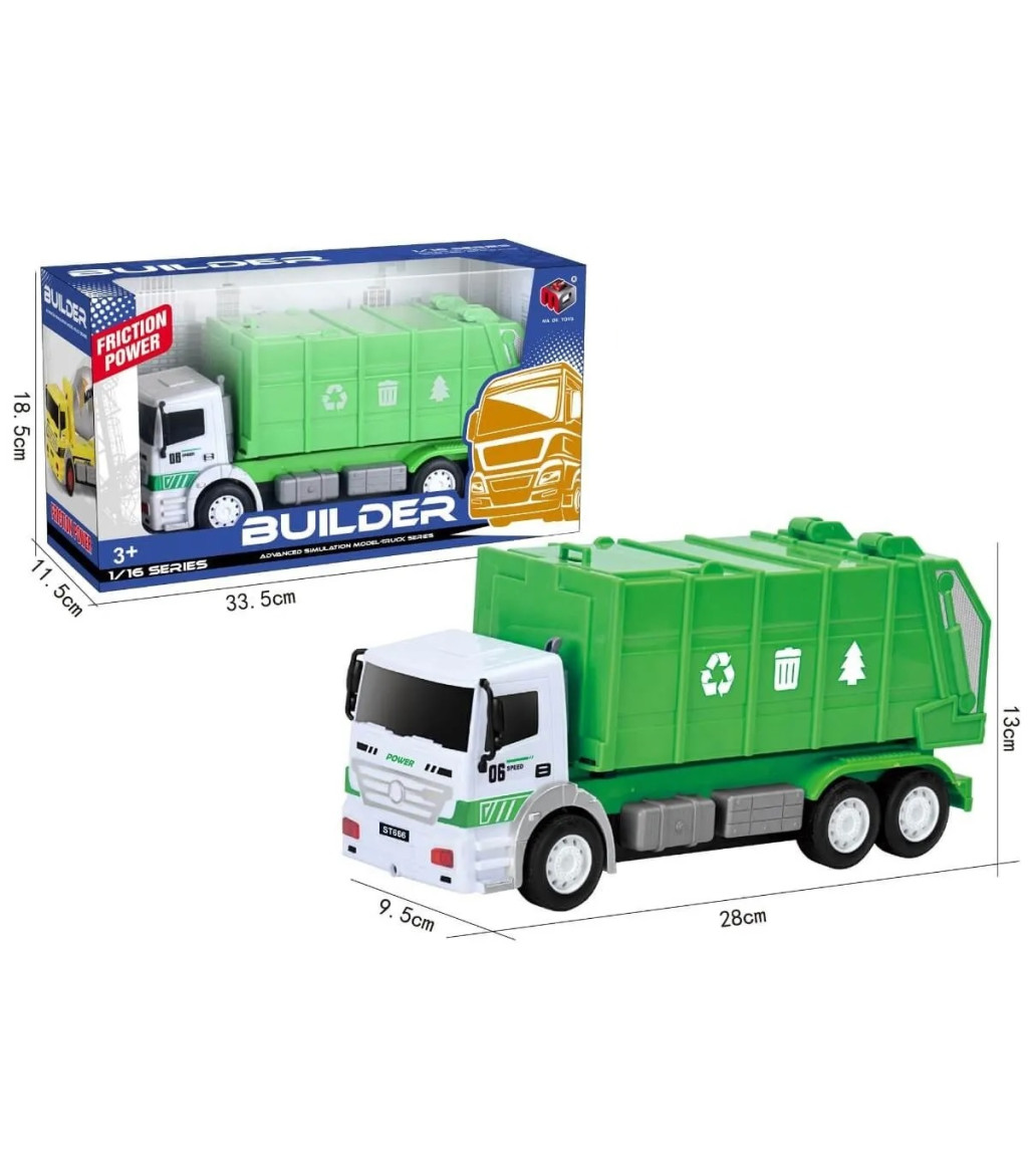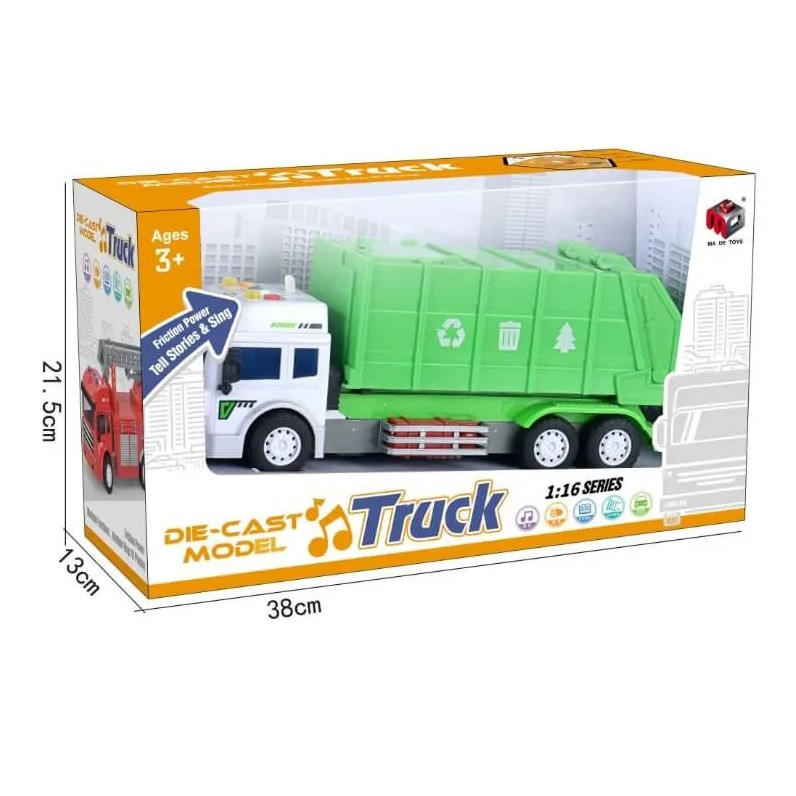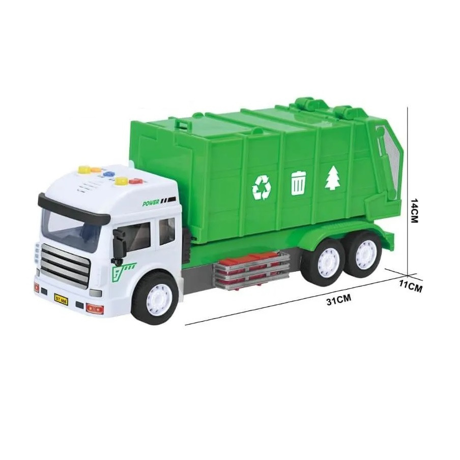 Камион за боклук със светлинни и звукови ефекти, 38x13x21,5cm, Зелен 3+ години
