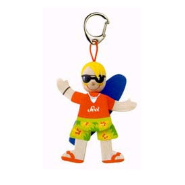 Ключодържател Sevi, С дървена фигурка Сърфист, 8.50х3 cm, Многоцветен