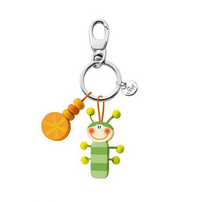 Ключодържател Sevi, С дървени висулка и Гъсеница, 3.50х3 cm, Зелен