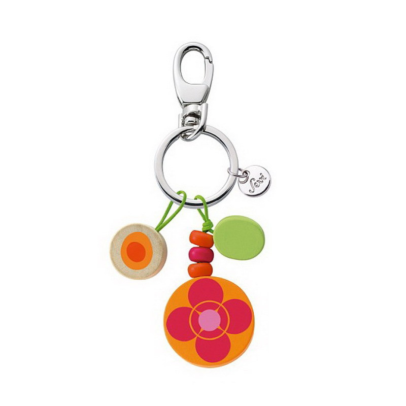 Ключодържател Sevi, С дървени висулка и Цвете Детелина, 3.50х3 cm, Червен