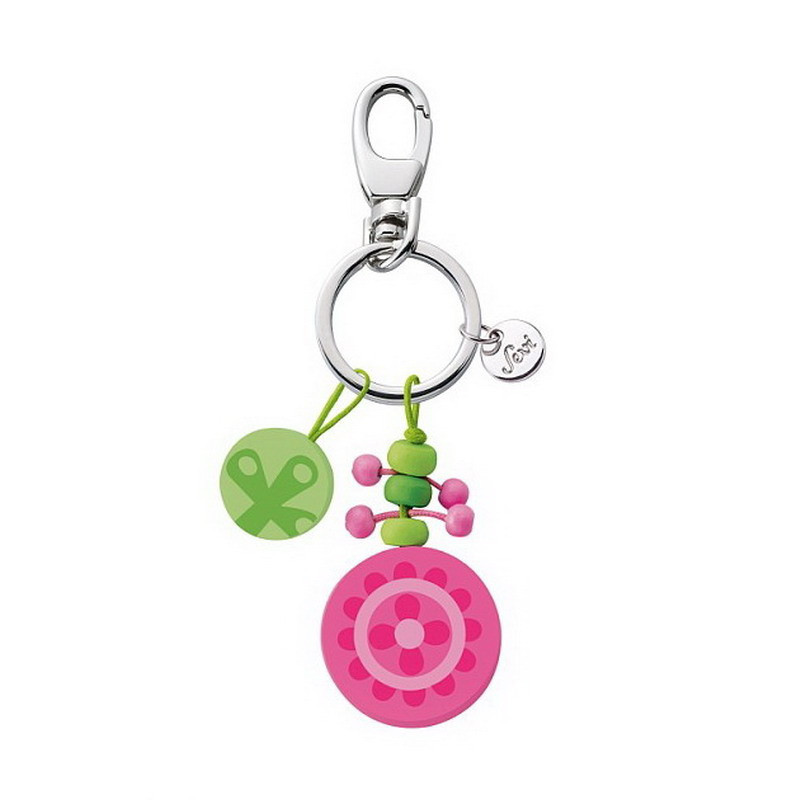 Ключодържател Sevi, С дървени висулка и Цвете Гъсеничка, 3.50х3 cm, Зелен/Розов