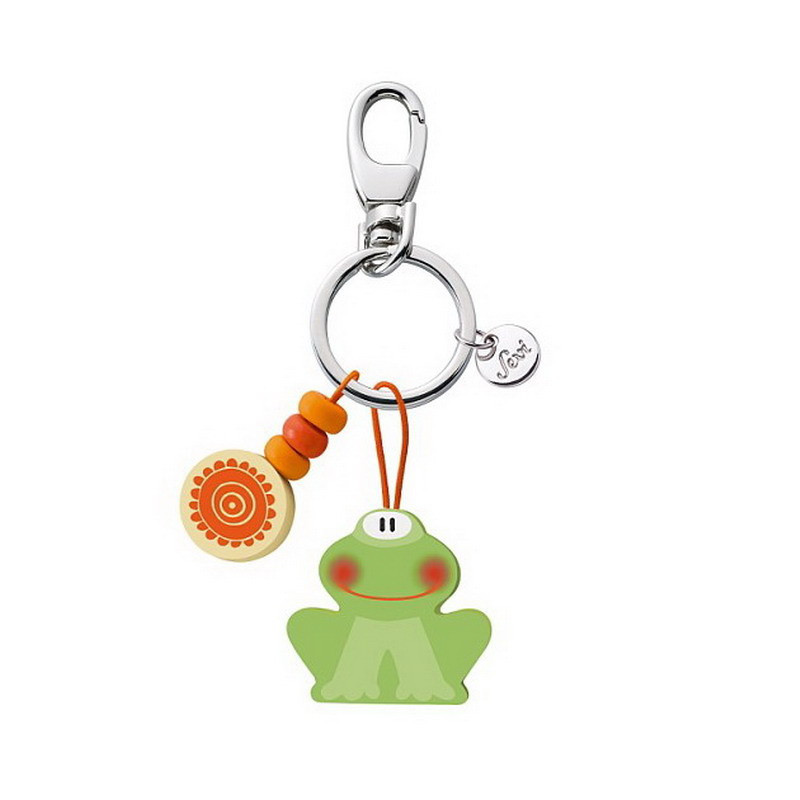 Ключодържател Sevi, С дървени висулка и Жабче, 3.50х3 cm, Зелен