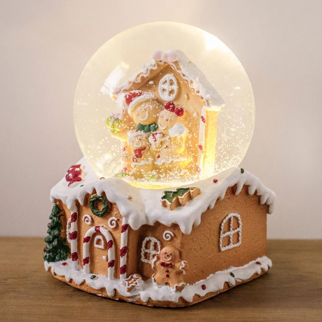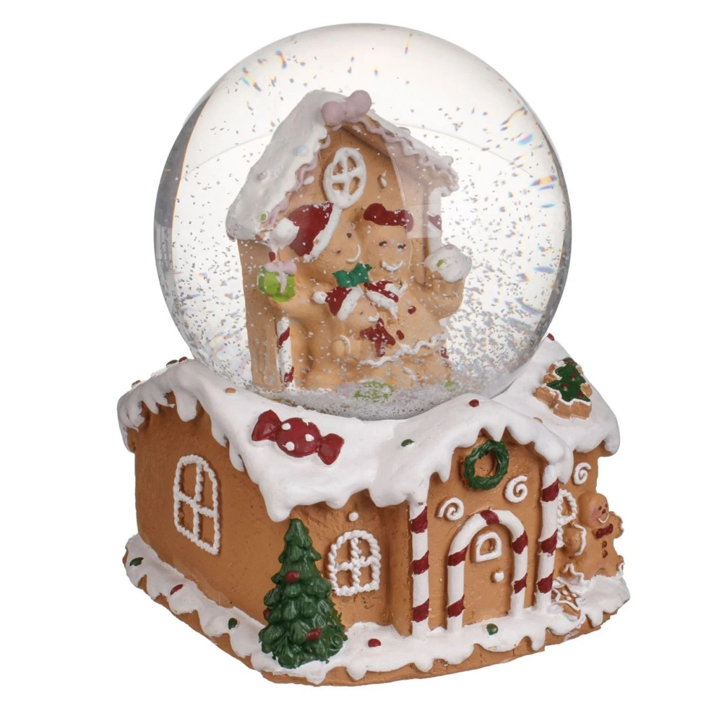 Коледна декоративна музикална снежна топка „Gingerbread къща“ с LED, 10x10x14 cm