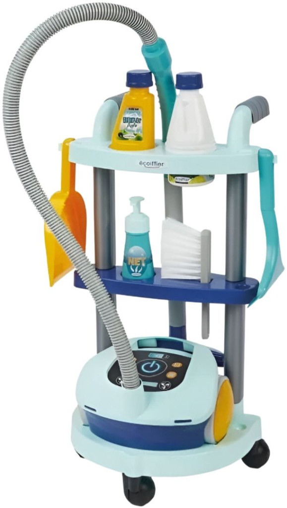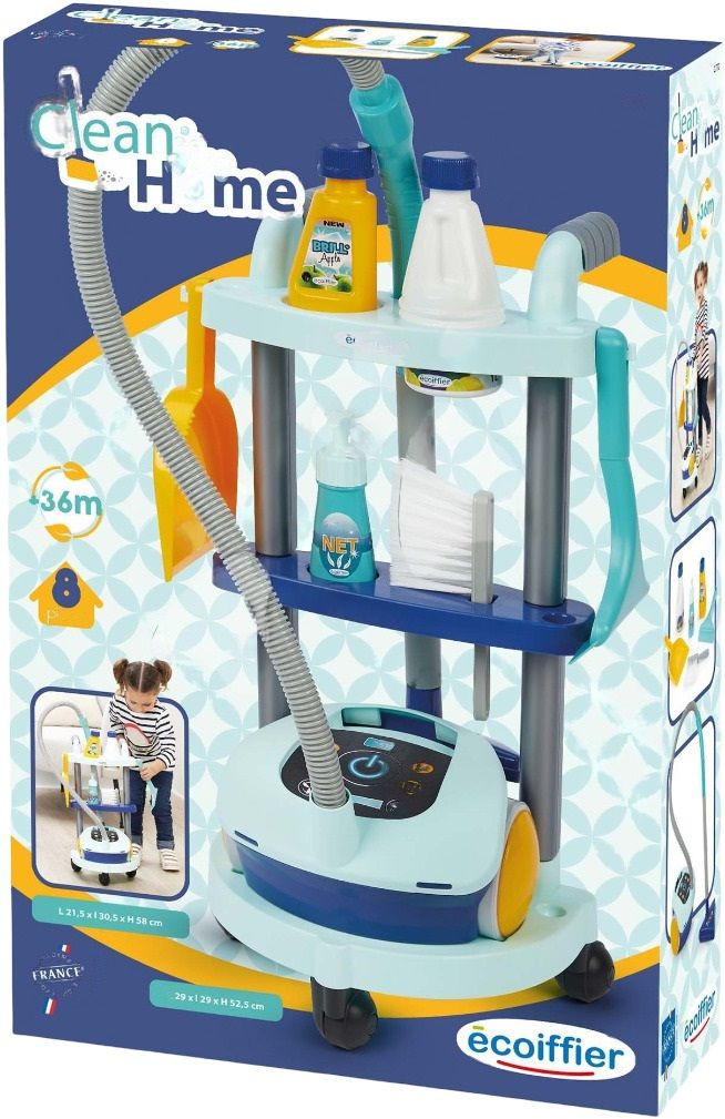 Количка за почистване и прахосмукачка, 8 части, 29x52.5x29 cm, Ecoiffier Clean Home, 3+ години