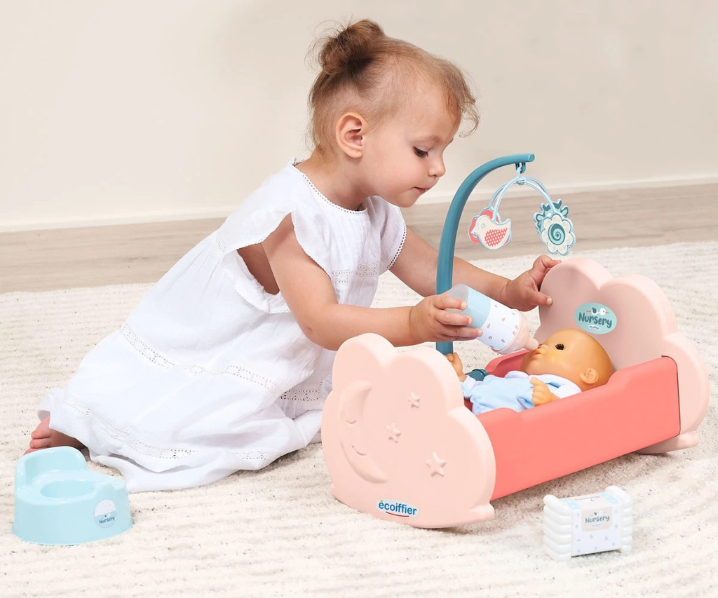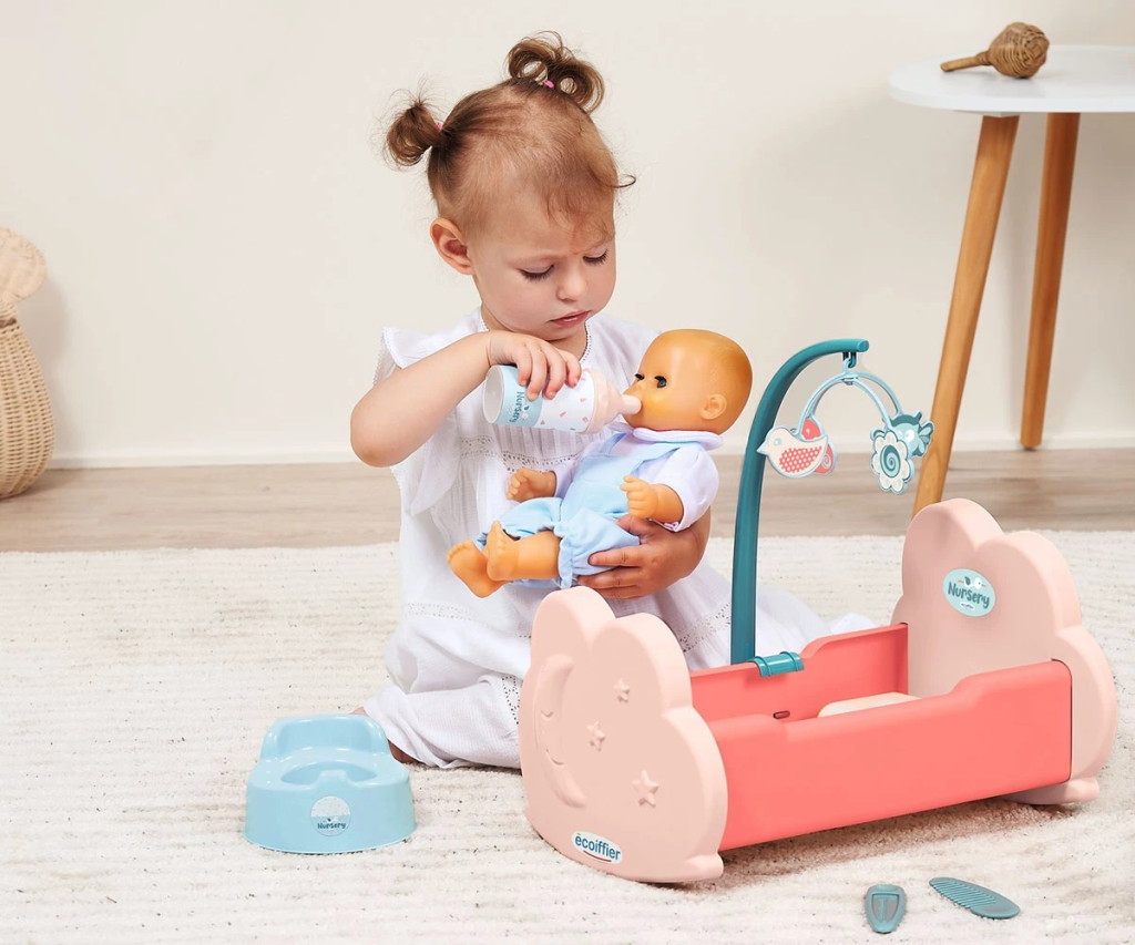 Играта стимулира въображението, емпатията и грижовността, като позволява на децата да имитират действията на родителите по реалистичен и увлекателен начин.