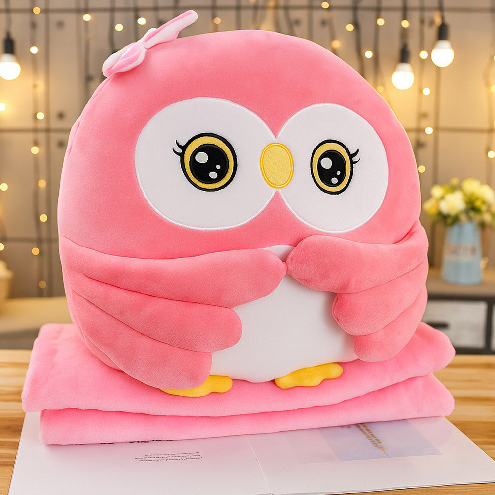 НОВО Комплект одеяло (160x105) и плюшена играчка Сова, 40см, Розово