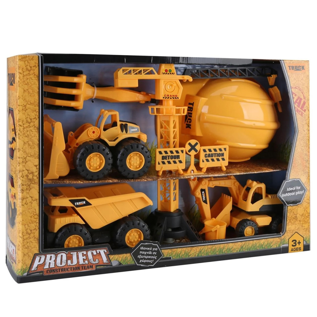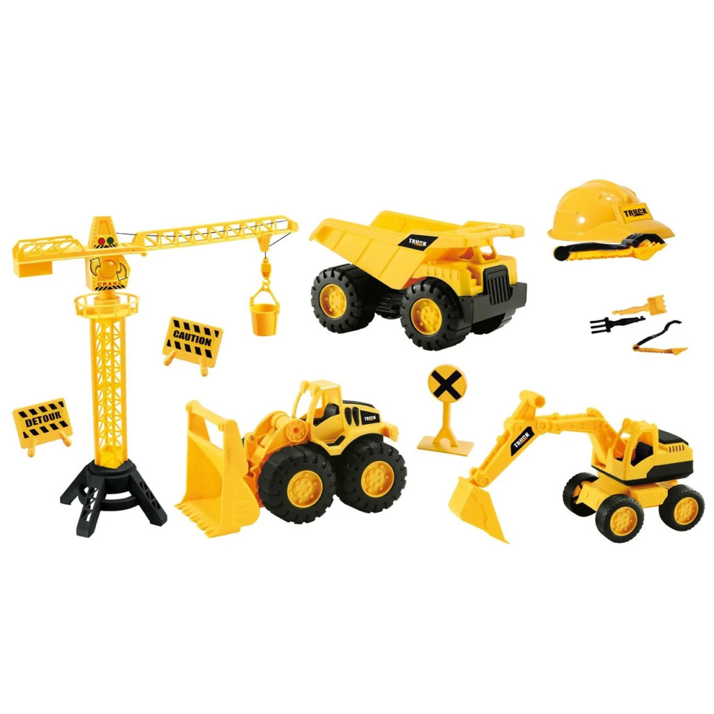 Комплект със строителни машини, аксесоари и каска, 53x11x36cm, Жълт, 3+ години
