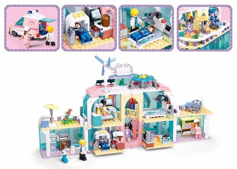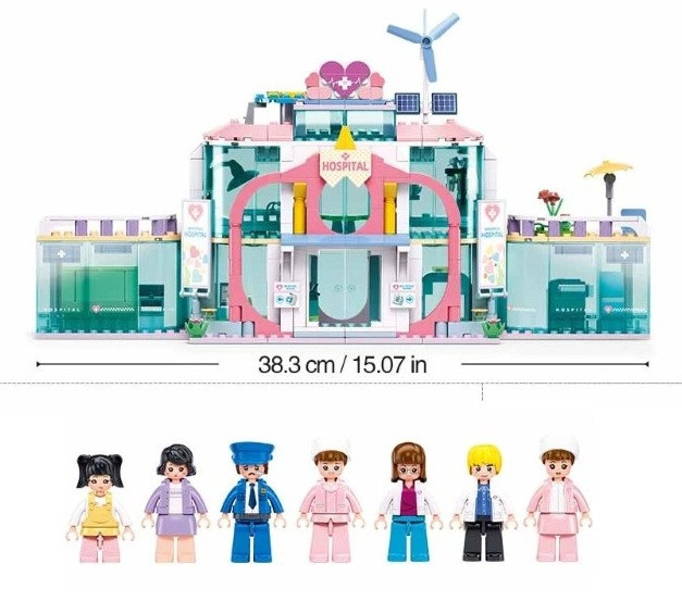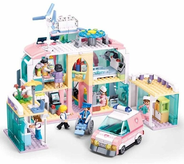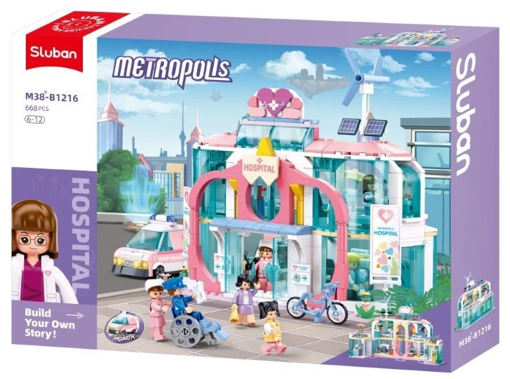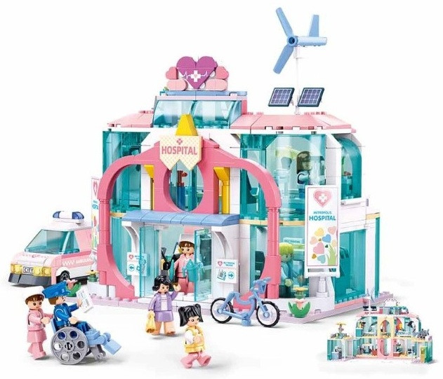 Конструкторът за сглобяване Болница е наистина интерактивен и модулен елемент от серията Metropolis. Той съдържа 668 части и 7 фигурки, включително персонал и пациенти. Страничните крила на сградата могат да се отварят – можете да построите болницата затворена, с частично отворени странични помещения или напълно отворена за лесен достъп по време на игра. Когато е напълно отворена, болницата е с дължина 38,3 см. В средната част има четири помещения, напълно оборудвани с интериорни елементи на офис, рентген или лаборатория, в които подовете и цялото оборудване могат да се местят по различни начини според желанията на детето. Комплектът за сглобяване включва линейка и други аксесоари – медицинска инвалидна количка и велосипед.