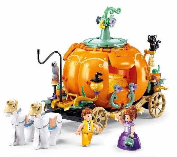 Детски конструктор, който ще ви отведе на бала на Пепеляшка, заедно с нейната приказна карета под формата на тиква, която е дърпана от две бели кончета.