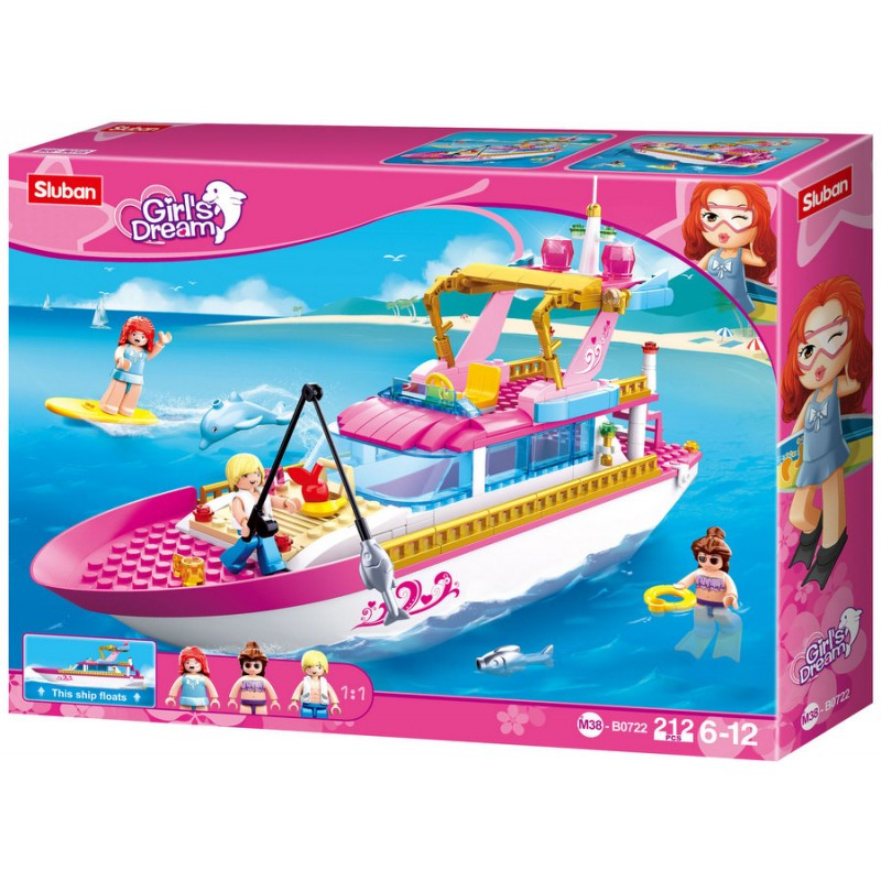 Конструктор Sluban Girl's Dream: Луксозна Яхта (212 ч.) с 3 фигурки, 38х29х7 см